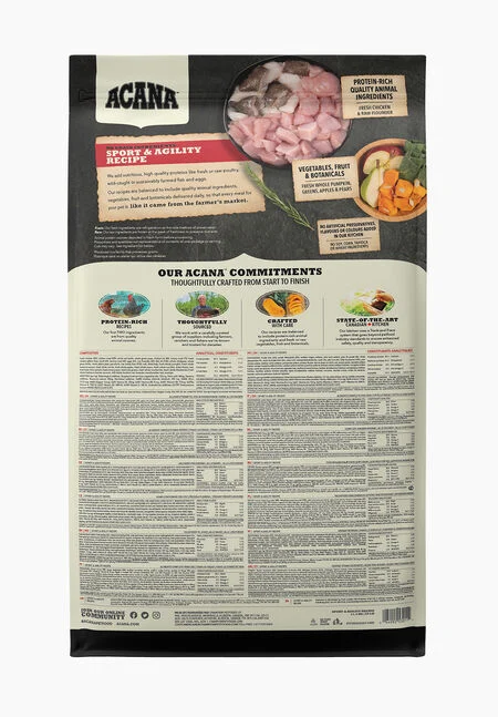 Acana Sport & Agility est une nourriture pour chiens sportifs qui font de l’exercice tous les jours. Ils ont donc besoin d’une alimentation complète qui leur apporte suffisamment de protéines et de graisses nécessaires à leur activité intense pour garantir l’endurance de votre animal en cas d’activité intense.
