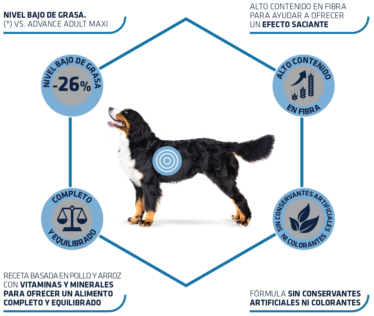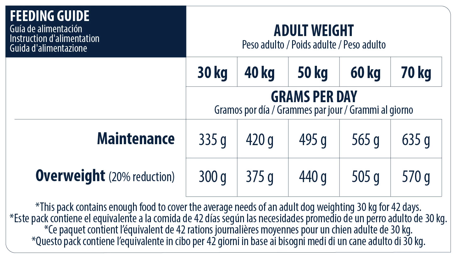 – Riche en fibres et en protéines et faible en calories: Pour le controle ou la perte de poids du chien sans qu’il perde de sa masse musculaire.