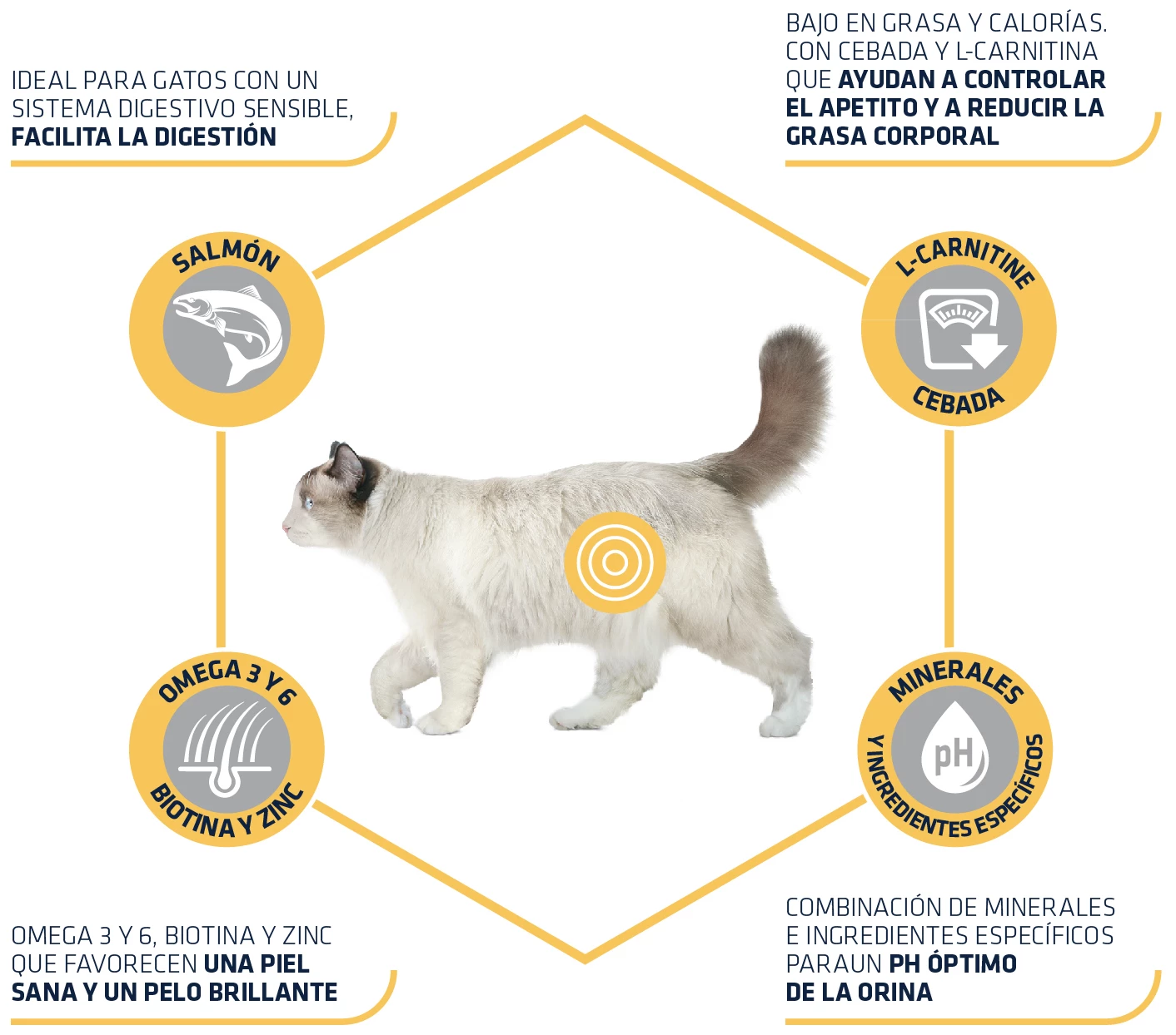 Il aide à transformer les graisses en énergie pour aider à réduire les dépôts de gras du chat.
