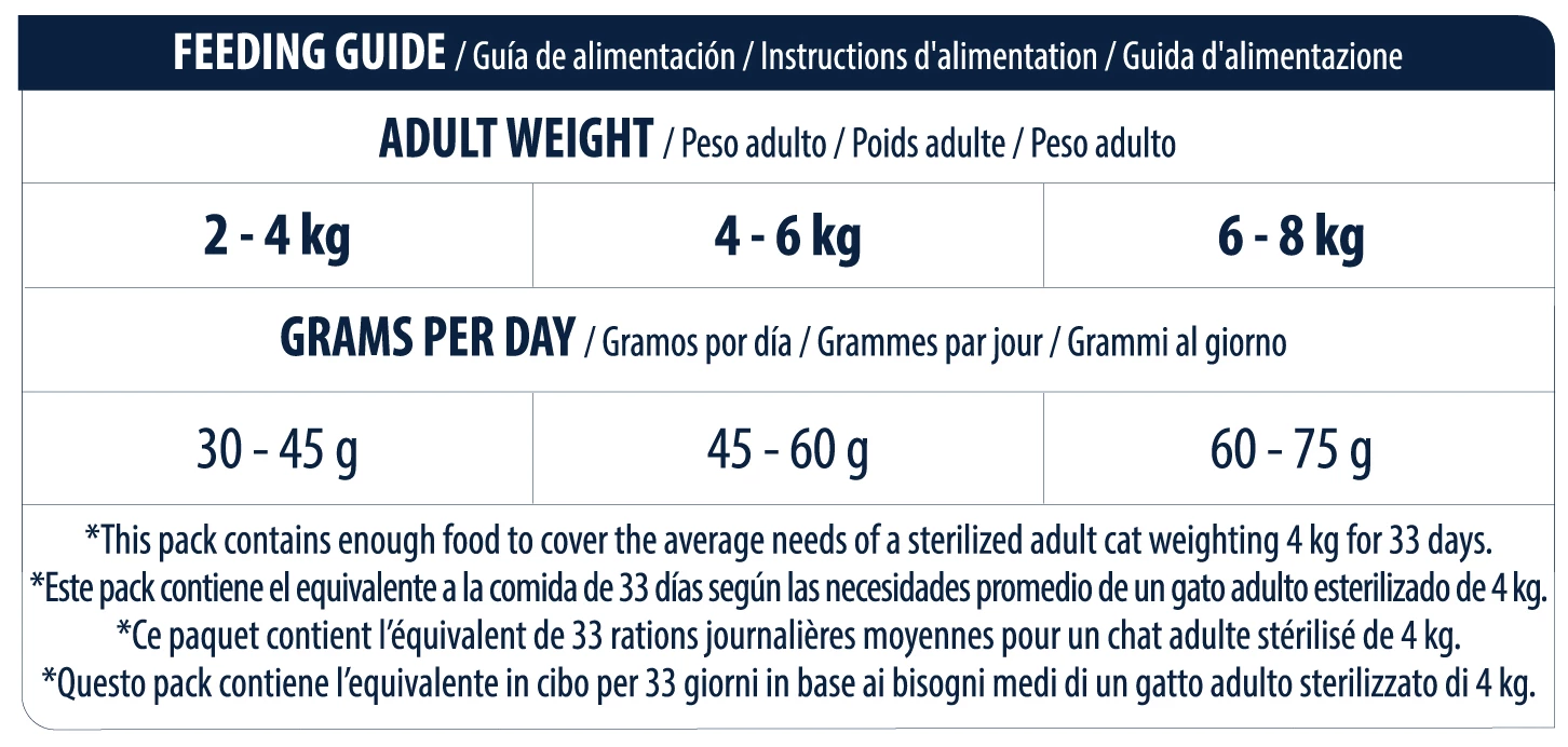 Grâce à une énergie réduite métabolisable, un niveau élevé de fibres permet de promouvoir la satiété, et une entrée de haut niveau des protéines et des graisses modérées pour aider à maintenir la masse musculaire. Il aide à réduire le risque de problèmes urinaires: Faciliter un pH approprié, augmentant le niveau de sodium pour augmenter l’apport en eau et la production d’urine, et en fournissant des glycosaminoglycanes qui aident à contrôler la formation de calculs urinaires.