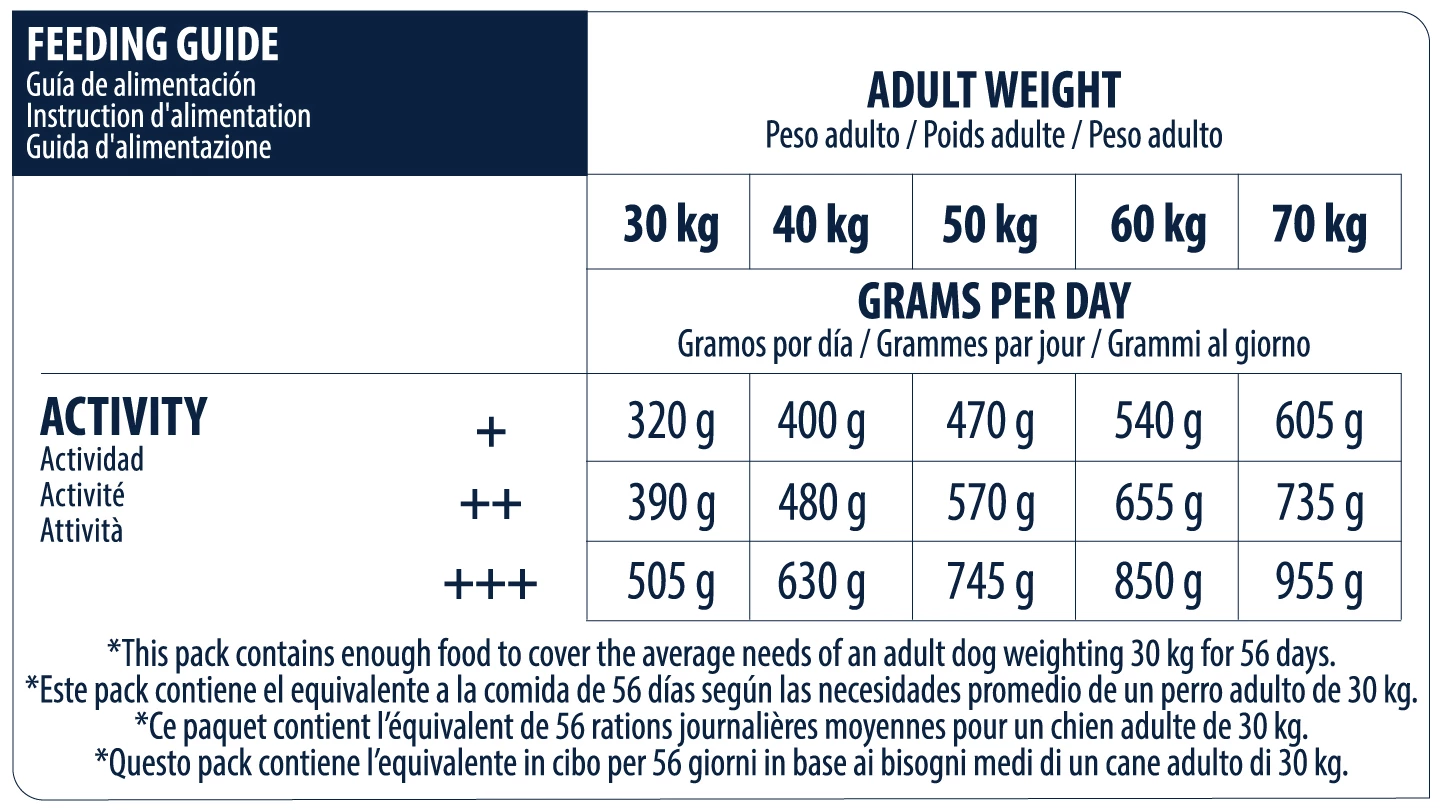 Aliment spécialement indiqué pour les chiens adultes de grandes races (poids supérieur à 30 kg).
