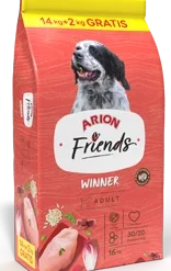 Arion Friends Winner est un aliment complet à haute teneur énergétique pour les chiens ayant une activité physique intense. Sa forte teneur en viande déshydratée, en poulet et en hémoglobine favorise une récupération musculaire rapide après l’effort. L’ajout de chondroprotecteurs et de L-carnitine favorise la récupération musculaire et prévient la détérioration des articulations chez les chiens qui travaillent dur.