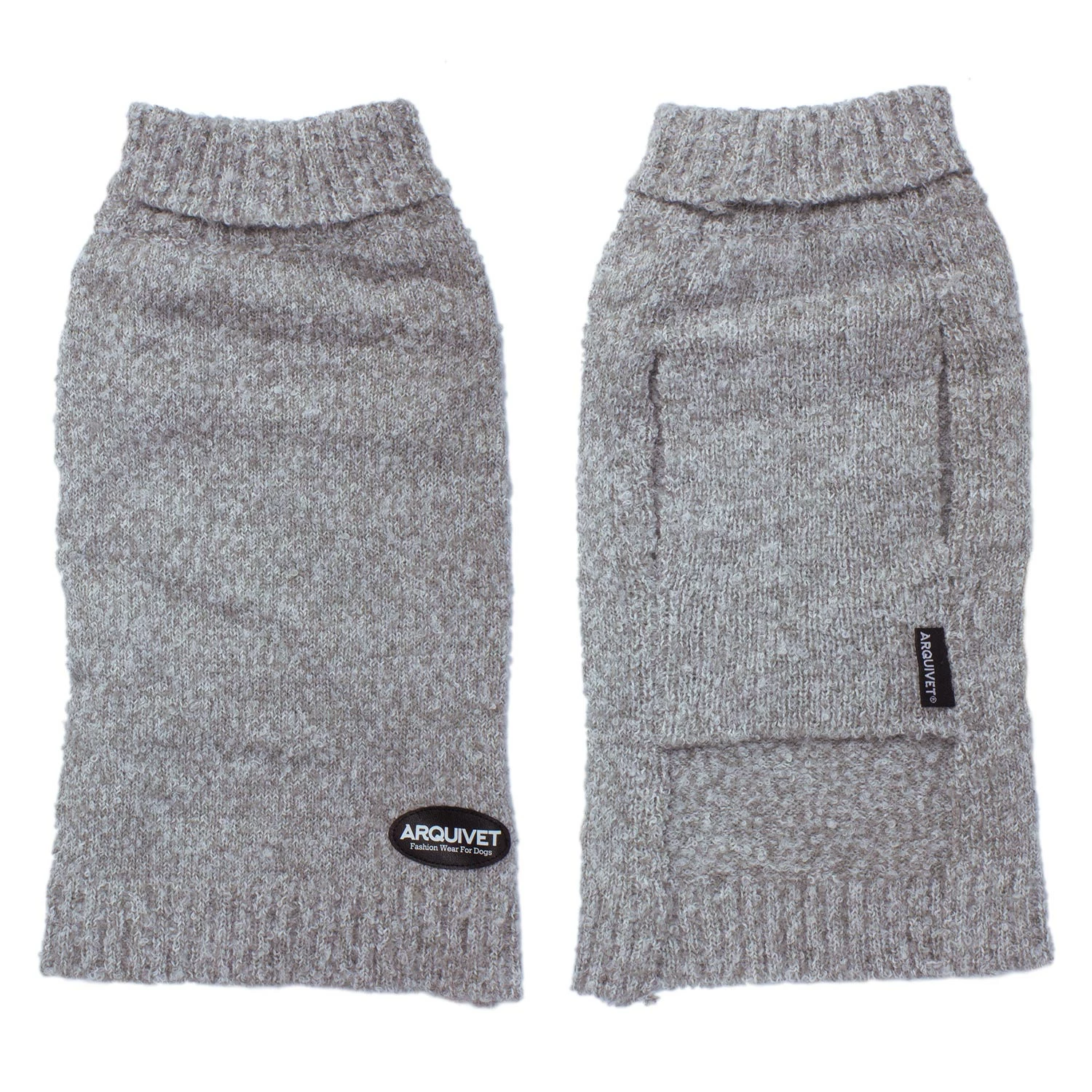 Pull en tricot gris et marbré pour chiens. Avec un haut col plié. Une pièce.