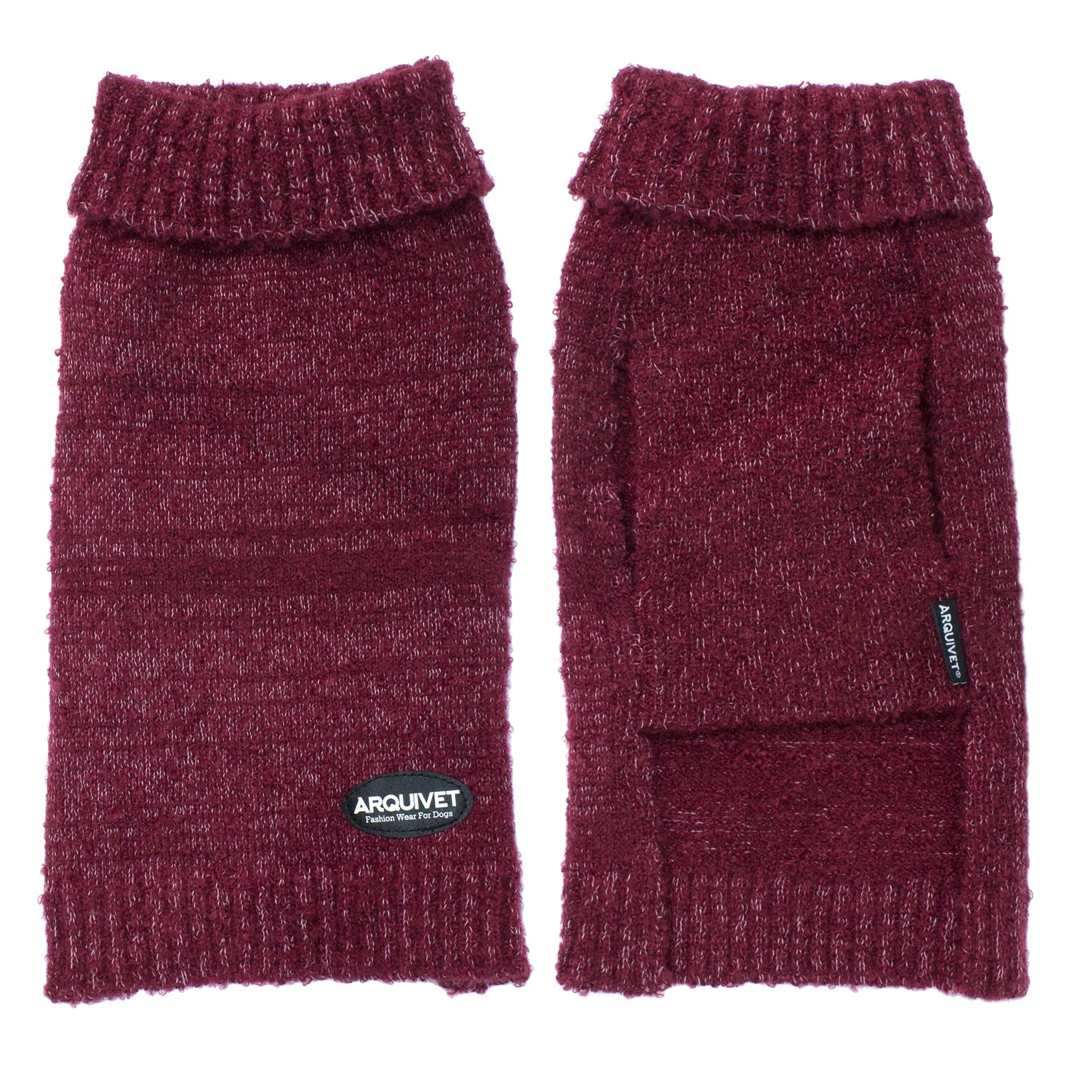 Pull en tricot marbré pour chiens, couleur bordeaux. Avec un haut col plié. Une pièce.