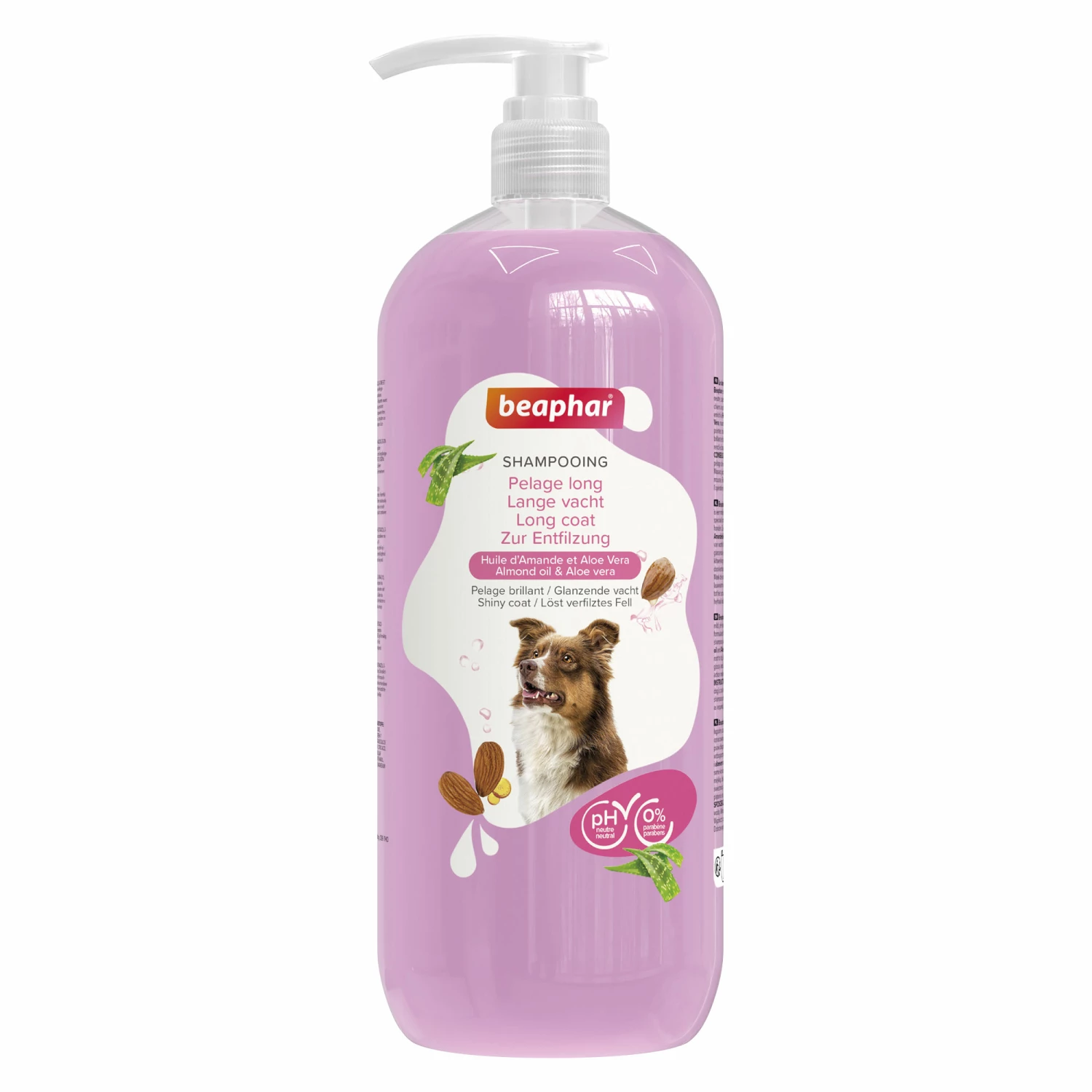 Beaphar Long-Haired Dog Shampoo est un shampooing doux au pH neutre pour chiens à poils longs, parfait pour une utilisation régulière. Enrichi en huile d’amande et en aloe vera, le shampooing procure un pelage doux et brillant et laisse à votre chien une odeur fraîche et propre, lisse et brillante tout en dégageant un parfum frais et propre. Chaque shampoing a été enrichi en Aloe Vera et en un actif supplémentaire comme le miel de Manuka, l’extrait de thé vert, l’huile d’amande ou de camomille.Cette gamme de shampoings est formulée avec des actifs naturels et vegan. Ils contiennent de l’Aloe Vera, qui aide à réduire la quantité d’huile sur le cuir chevelu grâce à ses propriétés antibactériennes, tout en protégeant et en hydratant la peau. Sa formulation, enrichie d’ingrédients végétaliens naturels, tels que l’huile d’amande, nourrit et prend soin de la peau et des cheveux grâce à sa haute teneur en vitamine E et en acides gras oméga.Son design est basé sur un design attrayant, frais et moderne. Les flacons se caractérisent par leur transparence, laissant apparaître le shampoing à l’intérieur et soulignant la présence d’ingrédients naturels. La gamme est basée sur une gamme de couleurs pastel, qui procure une sensation de douceur visuelle, et qui est renforcée par les courbes à la fois de l’emballage et du design. Mode d’emploi : Mouiller le pelage du chien avec de l’eau tiède. Masser doucement le shampoing pour le faire mousser. Rincer et répéter si nécessaire. Sécher soigneusement le pelage avec une serviette. Caractéristiques : EXTRA DOUX, grâce à sa formule à l’Aloe Vera, qui soigne et nourrit la peau et les cheveux. Grâce à son pH neutre, il protège la peau en respectant son pH. Contient 0% de parabènes et de silicones.ARÔME FRAIS ET PROPRE, laissant une odeur agréable pour l’animal et son propriétaire.VEGAN, à base d’ingrédients d’origine végétale.PRENANT SOIN DE L’ENVIRONNEMENT. Les bouteilles sont fabriquées avec 50% de PET recyclé. Les flacons se caractérisent par leur transparence, soulignant la présence d’ingrédients naturels.