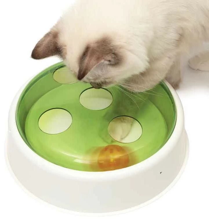 Le Dôme boule Catit est un jouet interactif qui amusera votre chat pendant des heures. Le jouet est composé d’une plaque rotative et d’une balle avec des trous dans le couvercle pour que votre chat puisse essayer d’attraper la balle et développer son instinct de chasseur.