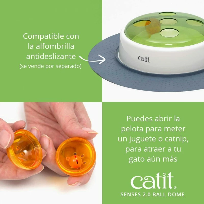 Le Catit Senses 2.0 Ball Some possède deux modes de jeu : continu et capteur. En mode continu, le Ball Dome est en mouvement continu et fait bouger la balle d’un côté à l’autre. En mode capteur, le jouet s’active et bouge lorsque le chat passe près du capteur.