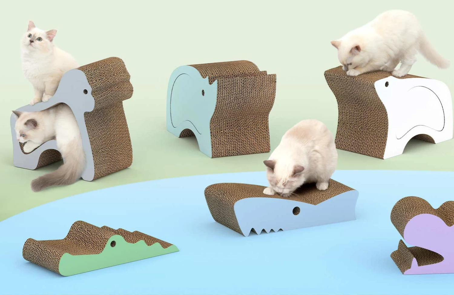 Les rasters du zoo de Catit sont des chats pour les chats sous la forme d’animaux plus modernes. Ce sont de grandes rayures en carton ondulé et comprennent un sac de cuisine (Catnip entre autres). Certains des conceptions sont de 2 sur 1, cela signifie qu’ils contiennent un deuxième grattoir amovible. L’emballage protège tous les coins les plus fragiles.