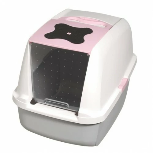 Le bac à sable rose à porte amovible possède un bac de base large et profond, ce qui le rend facile à nettoyer. On peut y accéder par la porte ou en retirant le couvercle au moyen de deux loquets latéraux pratiques et sûrs. La porte translucide est articulée pour que le chat puisse entrer et sortir confortablement sans se sentir observé. Il peut également être retiré si vous le préférez. Enfin, la poignée située sur le dessus vous permet de le transporter confortablement. Mesures : 40cm de large x 45cm de haut x 55cm de profondeur.