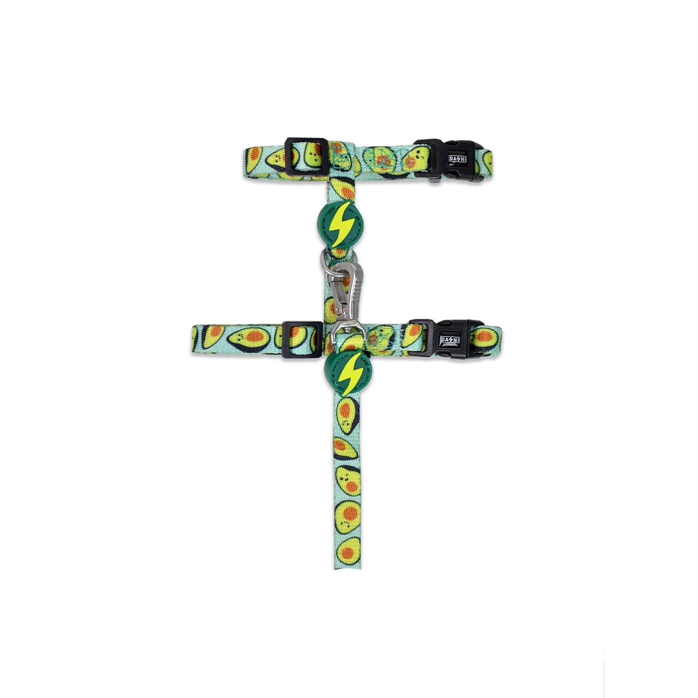 Harnais + laisse pour chat Avocado. Quand la vie vous donne des avocats… Faites du guacamole ! Cette collection se marie bien avec tout, comme l’avocat !