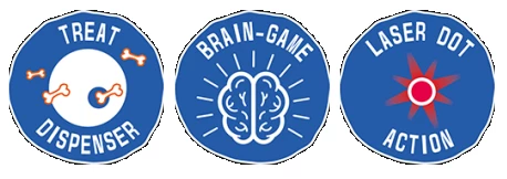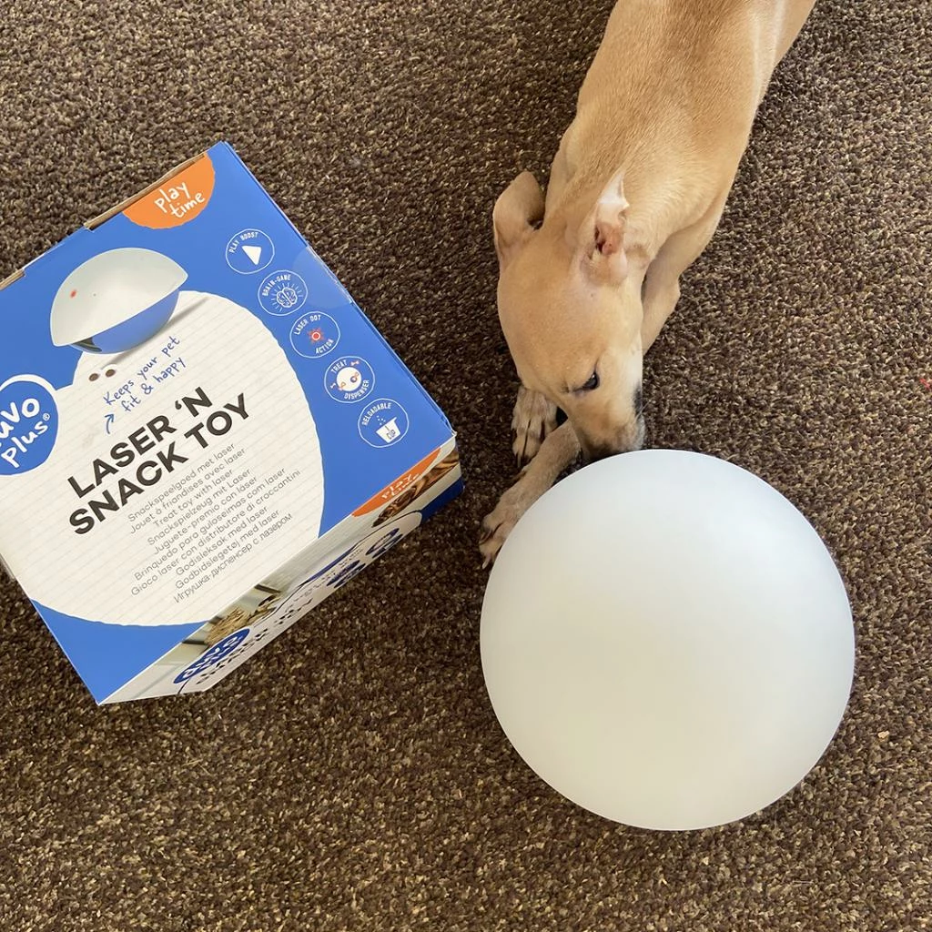 Laser N Toy Snack and Snack Dispensher Laser n Snack Toy pour chiens et chats. Le laser se déplace arbitrairement et encourage le chat à jouer. a 3 ouvertures à partir desquelles les collations peuvent tomber Ce jouet favorise le développement physique et mental de l’animal. A une minuterie et une fonction nocturne