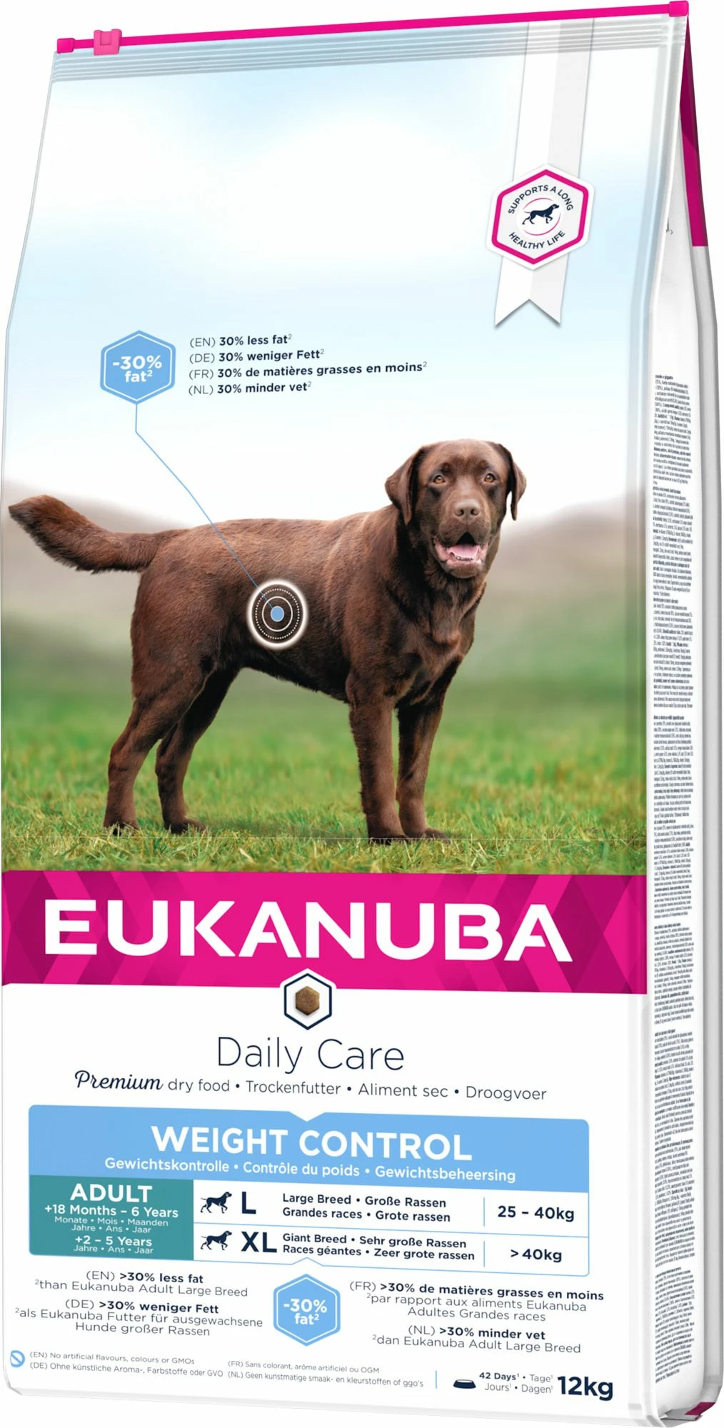 Quoi que vous fassiez, votre chien est toujours à vos côtés. Il mérite donc une alimentation exceptionnelle pour optimiser son potentiel extraordinaire jour après jour. Avec 30 % de matières grasses en moins*, Eukanuba Chiens Adultes Grandes Races Contrôle du Poids Poulet est l’aliment idéal pour aider les chiens de grande taille à garder un poids de forme.