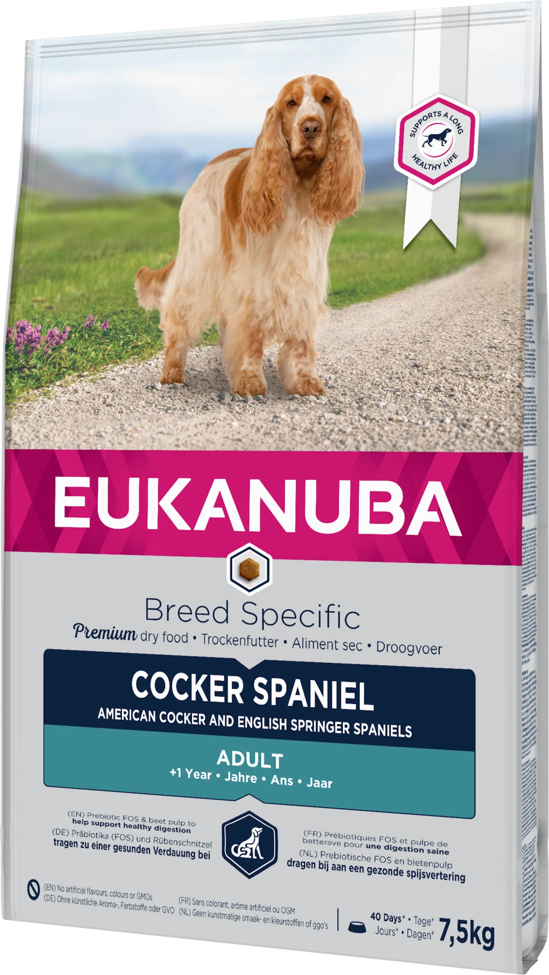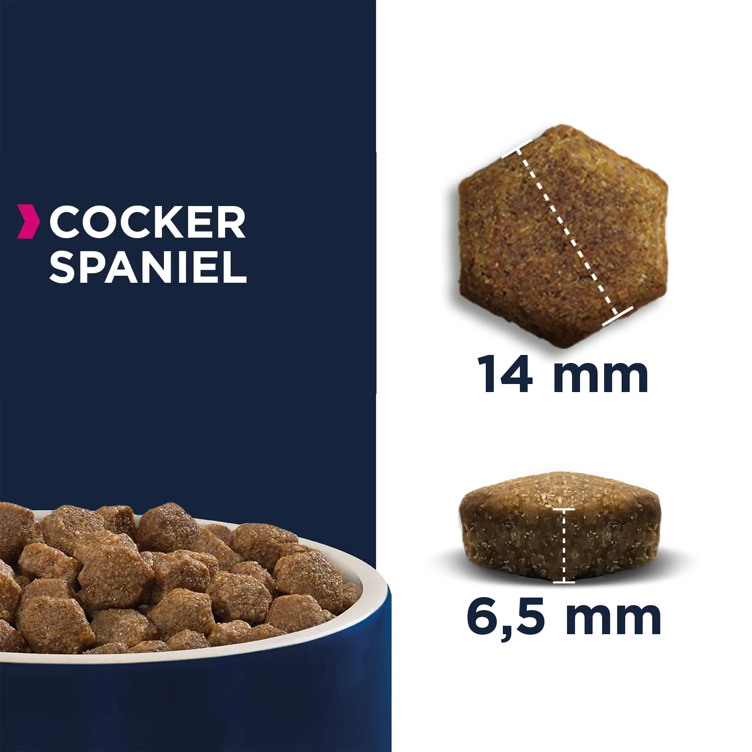Recommandé pour Aliment complet pour Cockers adultes. Convient aussi aux Springers anglais et aux Cockers américains, qui partagent les mêmes besoins nutritionnels.