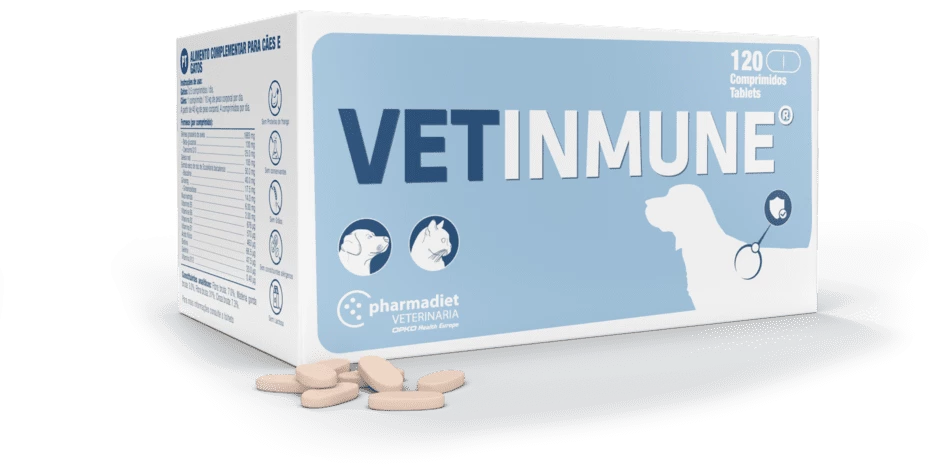 VETINMUNE®, à base de protéines d’avoine riches en bêta-glucanes, de gelée royale fraîche, de vitamines B1, B2, B3, B5, B6, B9 et B12, de baicaline, de ginsénosides provenant d’un extrait de ginseng, de coenzyme Q10 et de sélénium, apporte des nutriments qui soutiennent le système immunitaire. Il contribue également à stimuler l’organisme de l’animal, améliorant ainsi son état général.