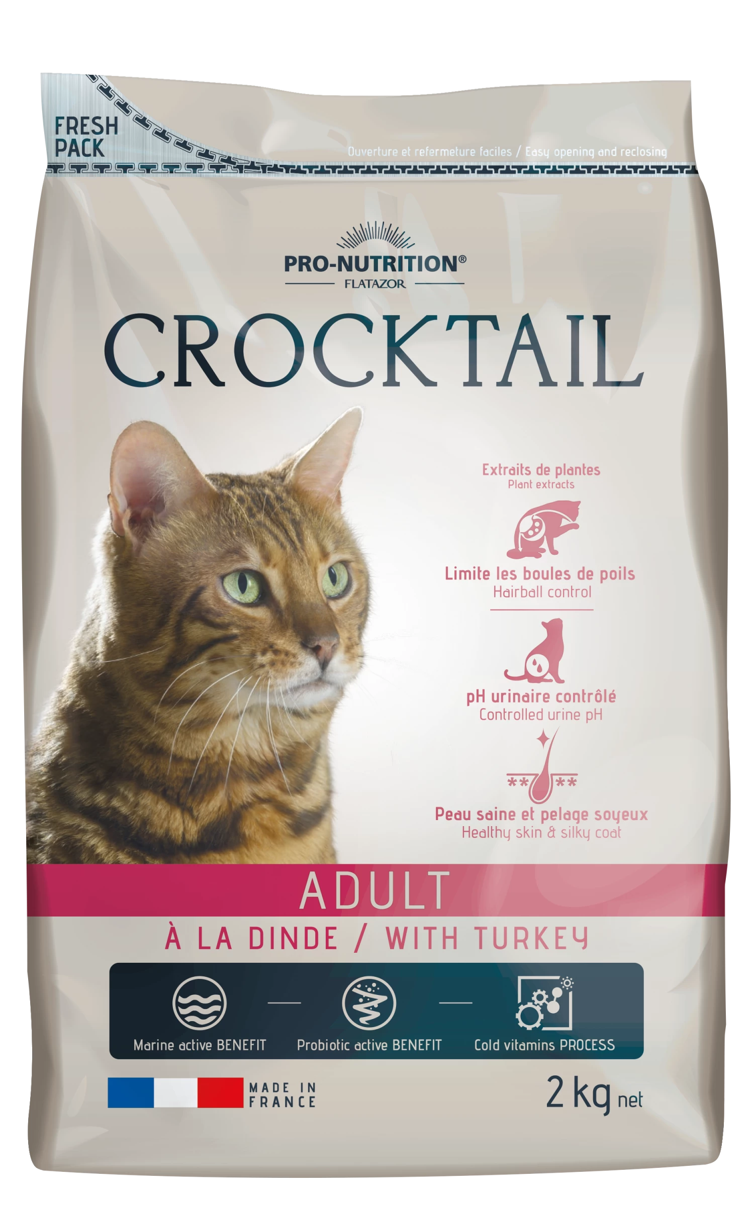 protéines animales déshydrater (25% min.) (poulet, canard, dinde mini. 4%, porc). Maïs Blé. Graisse animale Pois Gluten de maïs. Graines de lin. Hydrolysats de protéines animales. fibres haricots. La graisse de canard. Fibres de pomme Pulpe de betterave. Poisson autolisé (0,5%). Chlorure d’ammonium Taurine Méthionine extraits de plantes. La levure de bière Sel marin. blé malté. Fructooligosaccharides. Yuca Extraits de romarin. Enterococcus faecium (4b1707) (probiotiques). Vitamines et oligo-éléments.