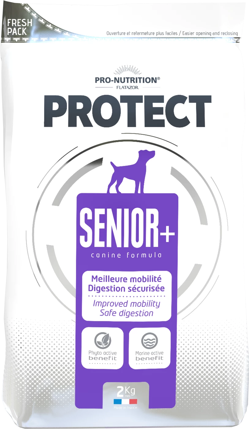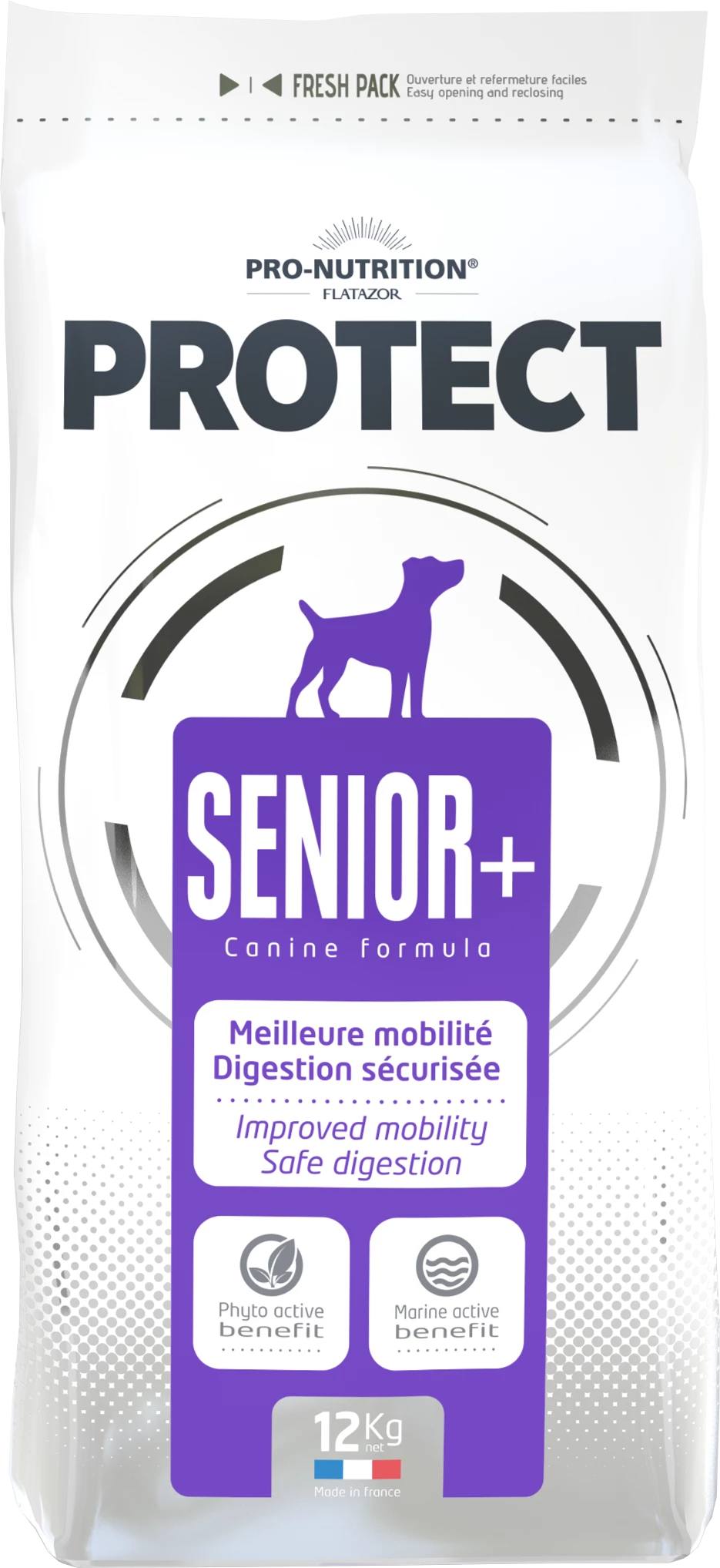 Protect Senior + est un aliment complet pour le chien âgé, ayant un confort de vie affecté par des fonctions physiologiques atténuées ou étant affaibli suite à une intervention chirurgicale.