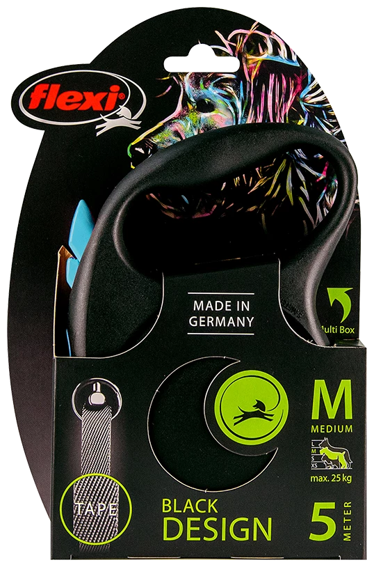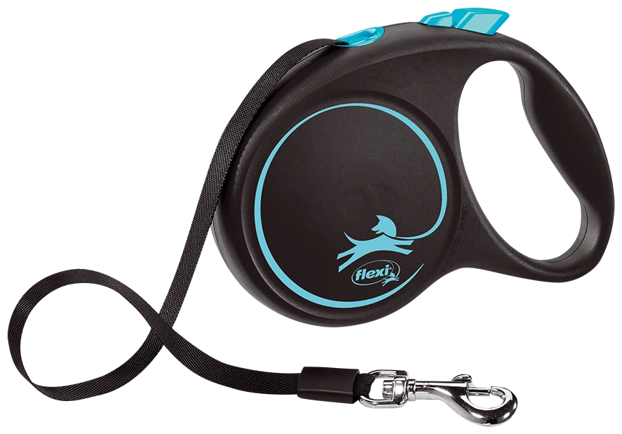 FLEXI BLACK DESIGN BLUE STRAP Le Flexi Black Design est disponible en trois couleurs audacieuses qui forment un contraste saisissant avec le boîtier noir, ainsi qu’une laisse noire subtile avec un logo classique.
