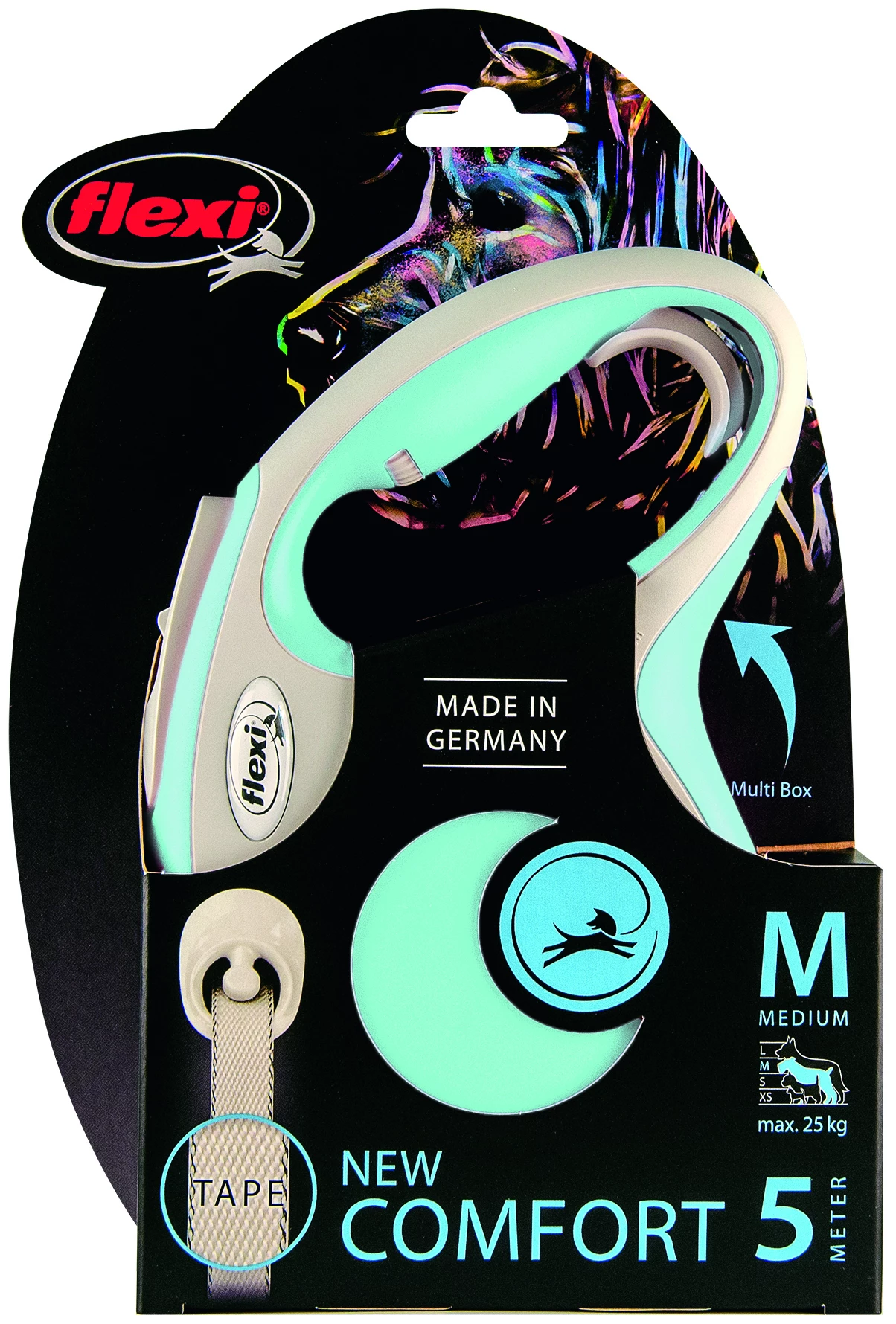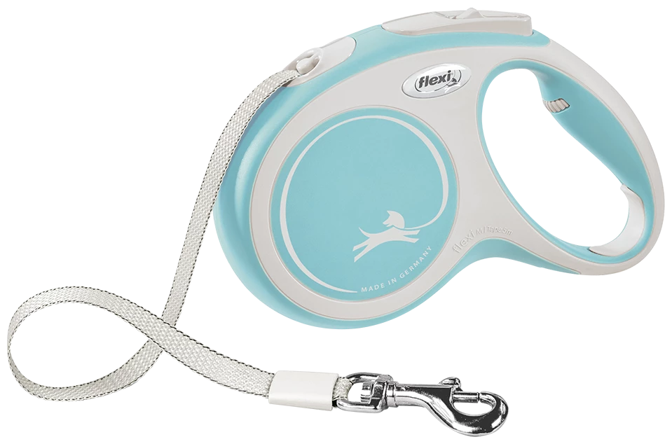 LAISSE FLEXI NEW COMFORT BLEU CLAIR La laisse bicolore au design parfait attire notre attention. New Comfort vous offre toutes les caractéristiques que vous souhaitez pour une promenade que vous adorerez. Plus de contrôle grâce à de meilleurs freins. D’autres accessoires comme le système d’éclairage à LED ou la Multi Box pour ranger les friandises ou les sacs d’hygiène. Profitez du voyage !