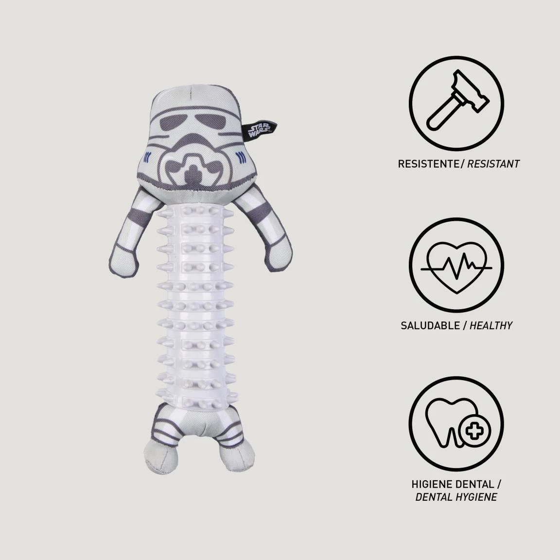 Produit à mâcher pour chien en forme de Stormtrooper, sous licence officielle Star Wars. Jouet pour chien – fabriqué en caoutchouc thermoplastique TPR pour offrir une bonne prise | Avec son, fabriqué en tissu renforcé et durable. Les produits à mâcher pour chiens – pour la santé dentaire de votre chien – nettoient et renforcent les dents et massent les gencives lors de la mastication. Jouet dentaire pour chien mesurant 11 x 30 x 9 cm Tranche d’âge : toutes les étapes de la vie.