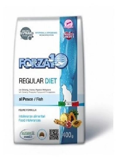 Regular Diet au poisson est la référence de la Ligne Diététique étudiée par SANYpet pour satisfaire les besoins de tous les chatsparticulièrement sensibles à la viande provenant de l’élevage intensif. Bases cliniques: les études cliniques ont montré que la grande majorité des chiens et des chats qui sont alimentés avec du poisson de mer et/ou de la viande qui ne provient pas de l’élevage intensif ne présente aucune des troubles qui sont fréquemment liés à l’alimentation. Sur la base de ces études SANYpet a étudié les produits FORZA10, lignes complétes, diététiques et de maintiens, pour chats et chiens de toutes les races et de toutes les tailles.