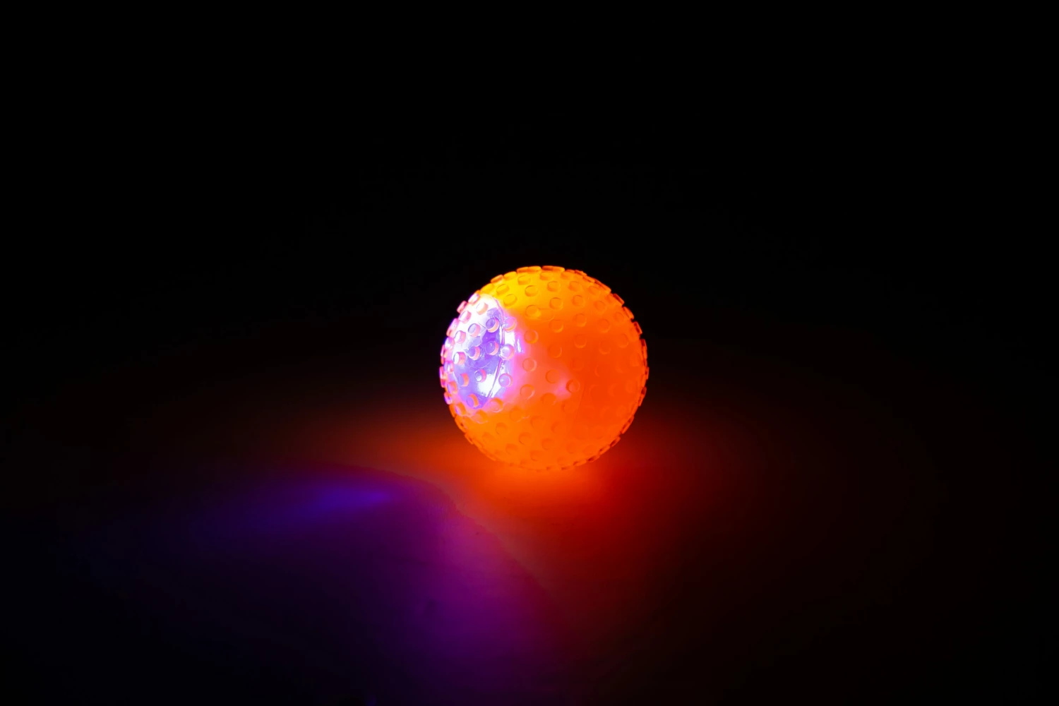 Boule lumineuse en TPR de haute qualité, parfaite pour jouer avec votre animal la nuit. Boule flottante avec des lumières de différentes couleurs. Diamètre de 6,5 cm