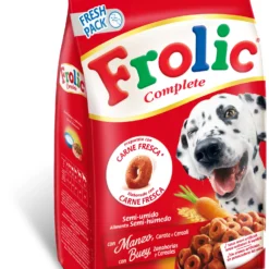 Frolic est un aliment semi-humide convenant à toutes les races et tailles de chiens.