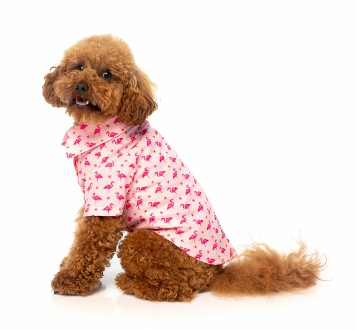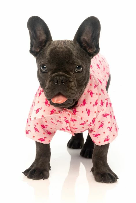 Chemise hawaïenne pour chien avec imprimé original de FuzzYard. Flamboyant, flamant rose et fabuleux… Fabboyant ! Il s’agit d’être bruyant et fabuleux dans cette magnifique chemise à imprimé flamant rose. Très confortable et s’adapte parfaitement au corps de l’animal, faites des vagues avec notre chemise d’inspiration hawaïenne totalement décontractée. Votre chiot fera l’envie de tous ceux qu’ils rencontreront dans ce look Vaycay classique Baxter le caniche toy porte une taille 2 Hugo le chiot Frenchie porte une taille 2 Matériaux : polyester, non toxique, hypoallergénique Composition : 100 % polyester. Non toxique. Ne provoque pas d’allergies Conseils d’entretien : lavage délicat en machine Tailles : TAILLE LONGUEUR POITRINE COU 138 – 39 cm / 15 – 15,4 pouces 26 – 29 cm / 10,2 – 11,6 pouces 24 – 26 cm / 9,4 – 10,2 pouces 244 – 45 cm / 17,3 – 17,7 pouces 30 – 33 cm / 11,8 – 13 pouces 28 – 30 cm / 11 – 11,8 pouces 351 – 52 cm / 20,1 – 20,5 pouces 35 – 38,5 cm / 13,8 – 15,2 pouces 33 – 35 cm / 13 – 13,8 pouces 459 – 60 cm / 23,2 – 23,6 pouces 40 – 41 cm / 15,1 – 16,1 pouces 37 – 39 cm / 14,6 – 15,4 pouces566 – 67 cm / 26 – 26,4 pouces45 – 46,4 cm / 17,7 – 18,3 pouces42 – 44 cm / 16,5 – 17,3 pouces676 – 77 cm / 29,3 – 30,3 pouces59 – 62 cm / 23,2 – 24,4 pouces45 – 47 cm / 17,1 – 18,5 pouces786 – 87 cm / 33,9 – 34,3 pouces69 – 72 cm / 27,2 – 28,3 pouces50 – 52cm / 19,7 – 20,5 pouces