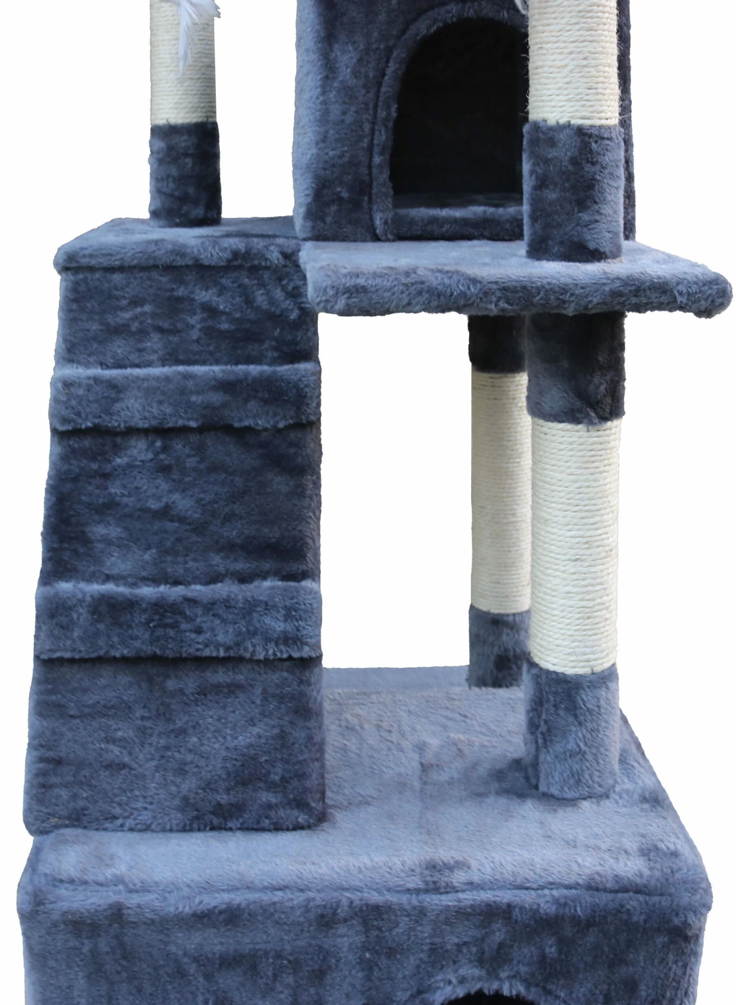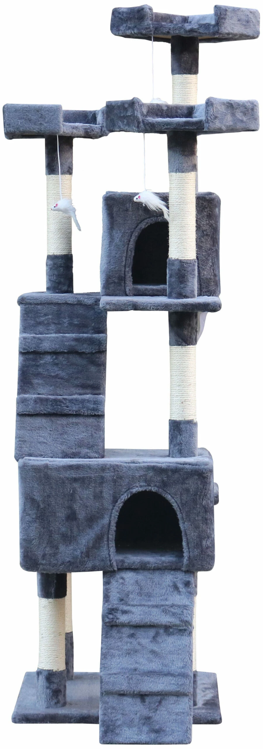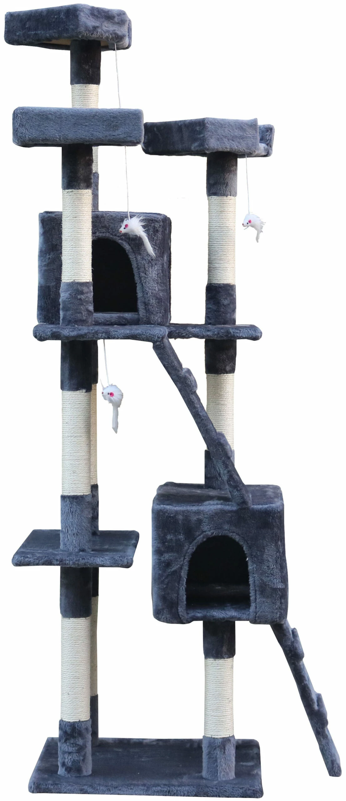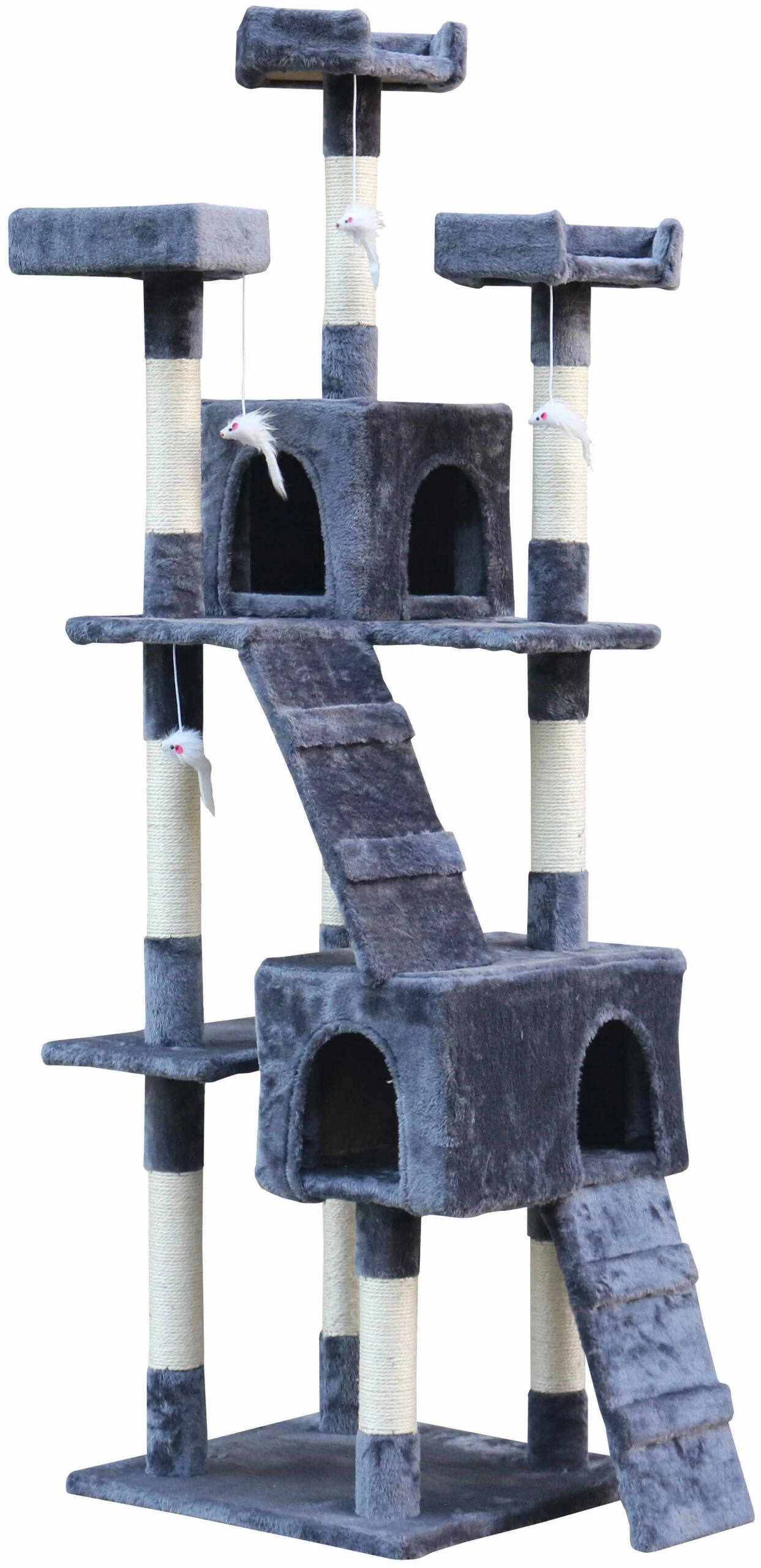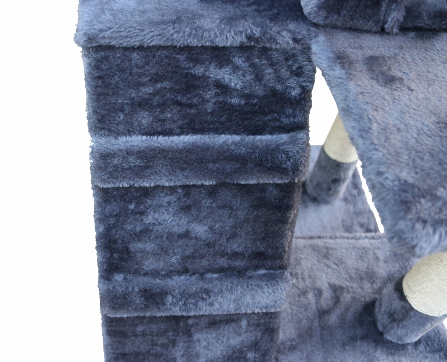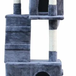 Centre de jeu parfait pour plusieurs chats, sur plusieurs étages, avec rampe d’accès, tunnel vertical et hamacs souples. Plusieurs endroits d’où ils peuvent se reposer tout en gardant un il sur leur environnement.