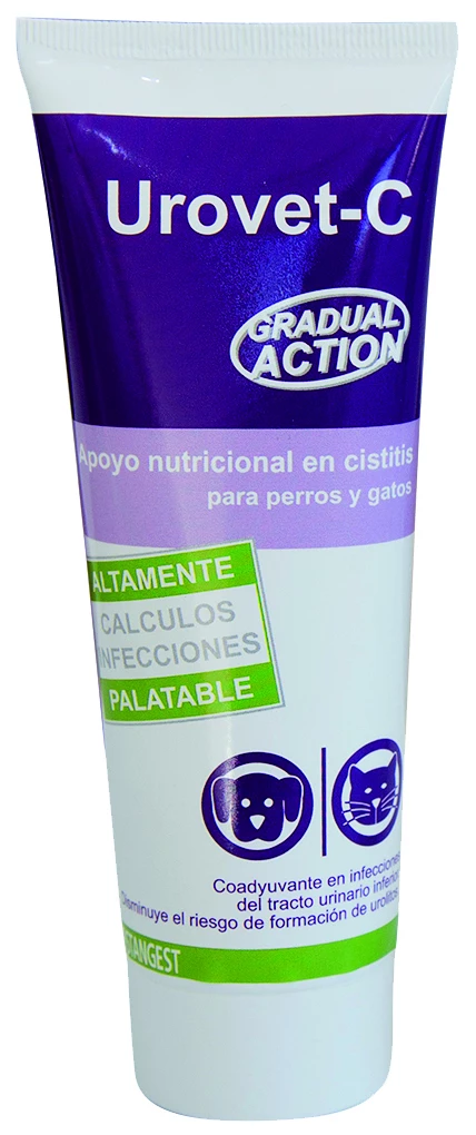 Aliment complémentaire spécifique en pâte, pour les maladies rénales chez le chien et le chat. Indiqué pour les infections des voies urinaires inférieures, les cystites idéopathiques et les calculs vésicaux. Ses ingrédients régénèrent et maintiennent la couche muqueuse protectrice de glycosaminoglycanes de la vessie urinaire. Prévient et contrôle les infections récurrentes, chroniques et résistantes aux antibiotiques des voies urinaires. Il bloque l’adhésion des bactéries pathogènes à la paroi interne de la vessie urinaire et empêche leur accumulation. Il est diurétique et antilithiasique.