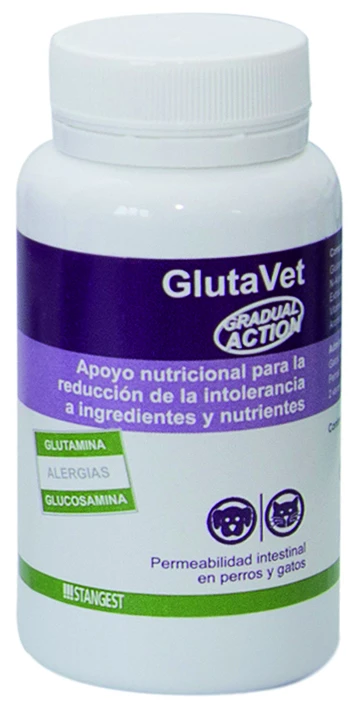 Supplément nutritionnel pour restaurer la muqueuse intestinale des chiens et des chats souffrant d’allergies alimentaires ou de diarrhée. GlutaVet favorise la récupération rapide de la muqueuse, après l’ingestion d’anti-inflammatoires. Prescrit pour les animaux de compagnie souffrant de diarrhée chronique. Présentation : 60 comprimés.