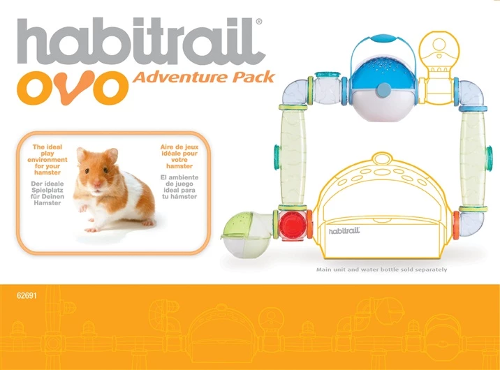 Ce produit de qualité Hagen est un module pré-assemblé à ajouter à l’unité Habitrail OVO Home, ou à un autre espace du système Habitrail que vous avez conçu.