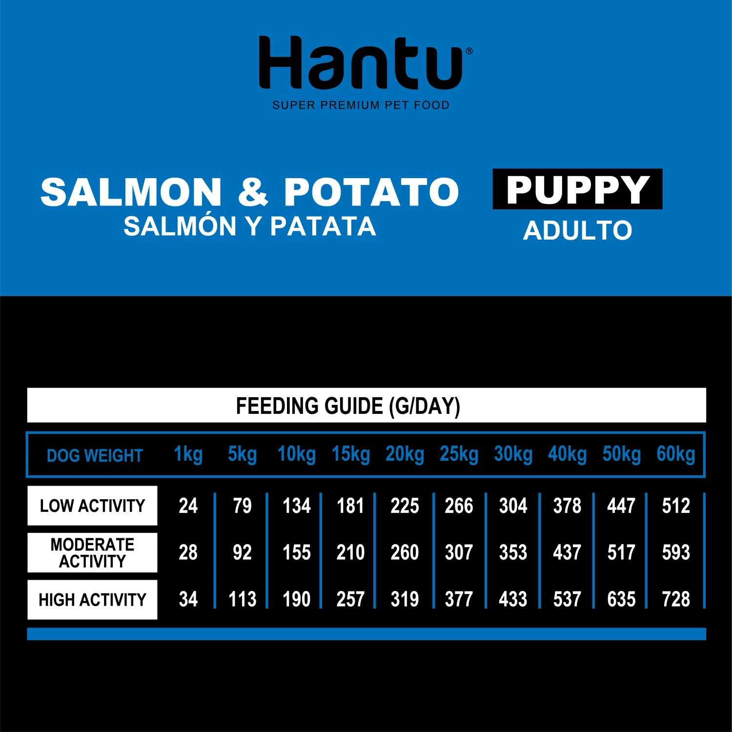 Hantu Adult Salmon & Potato est un aliment naturel pour les chiens adultes de 12 mois et plus. Pour toutes les tailles et races.