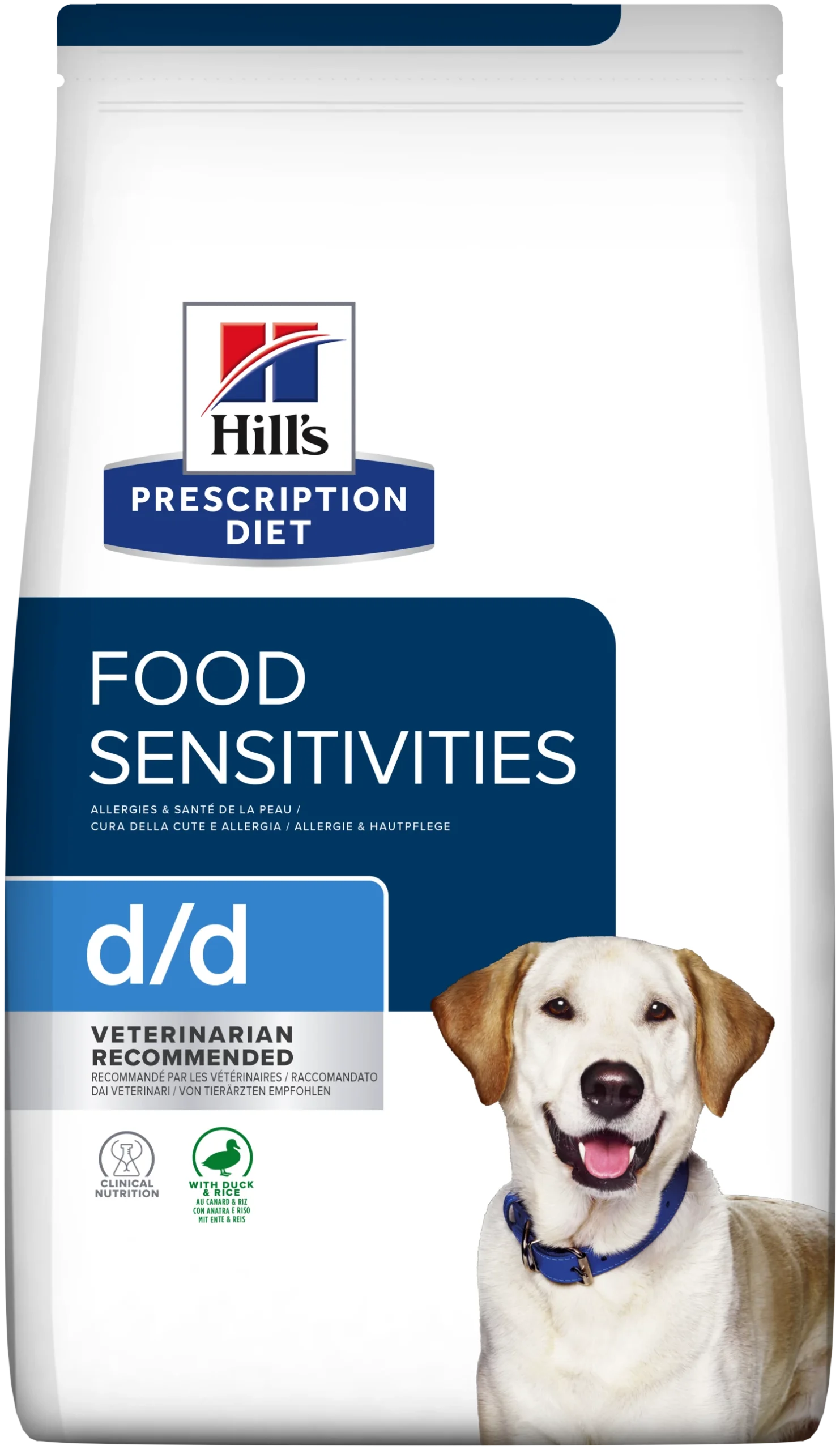 Prescription Diet™ Canine d/d™ Canard est spécialement formulé pour la gestion nutritionnelle des chiens présentant un quelconque trouble cutané et des vomissements / diarrhées résultant d’allergie ou d’intolérance alimentaire. Bienfaits Essentiels