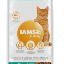 Iams SANTÉ PROACTIVE Allégé en graisse riche en poulet (30% de poulet et de dinde) est un aliment complet et équilibré destiné aux chats adultes ayant tendance à l’embonpoint.