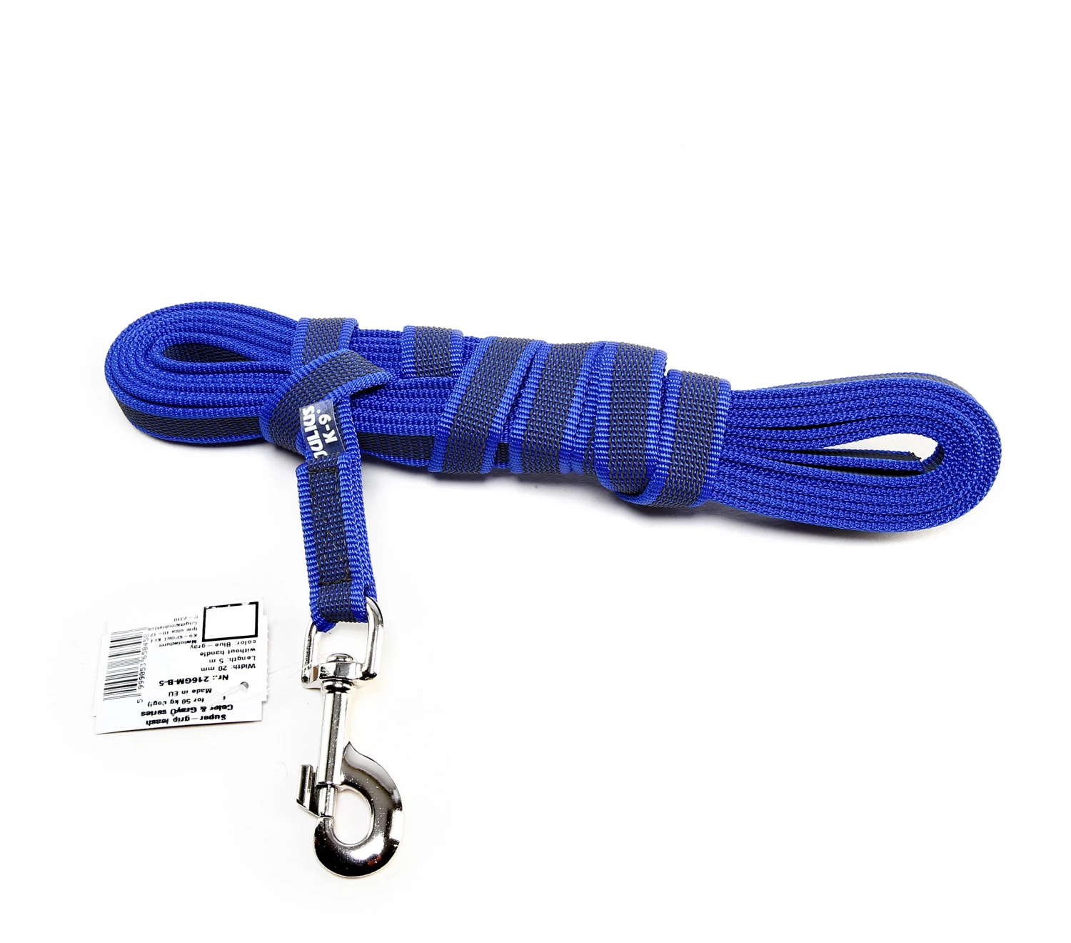 Cette sangle est fabriquée en matériau textile durable, agréable au toucher. Les fils de caoutchouc tissés dans le matériau assurent une prise optimale pour la conduite du chien. Elle est fonctionnelle même en cas de pluie ou d’humidité, pour les promenades, les activités sportives et l’entraînement.