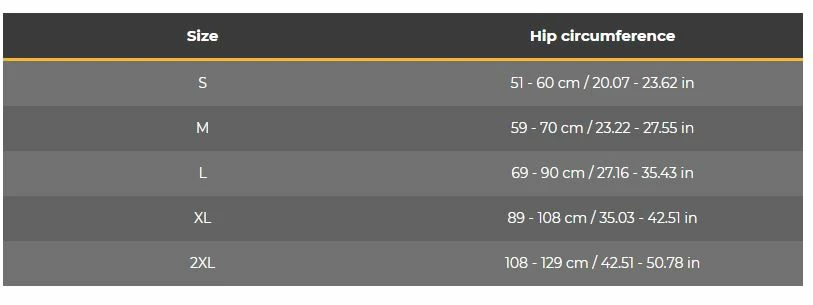 M – Tour de hanche de 59 à 70 cm