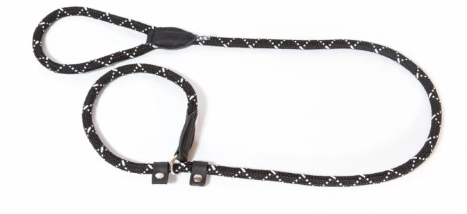 Sangle en nylon noir avec inserts tubulaires réfléchissants Retriever. 12 mm x 1,2 mètres