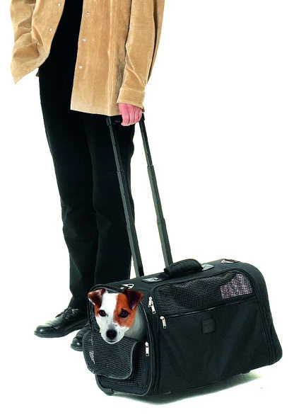 Sac à roulettes de transport versatile, avec anses et roues pour le transport de votre animal jusqu’à 15 Kg.