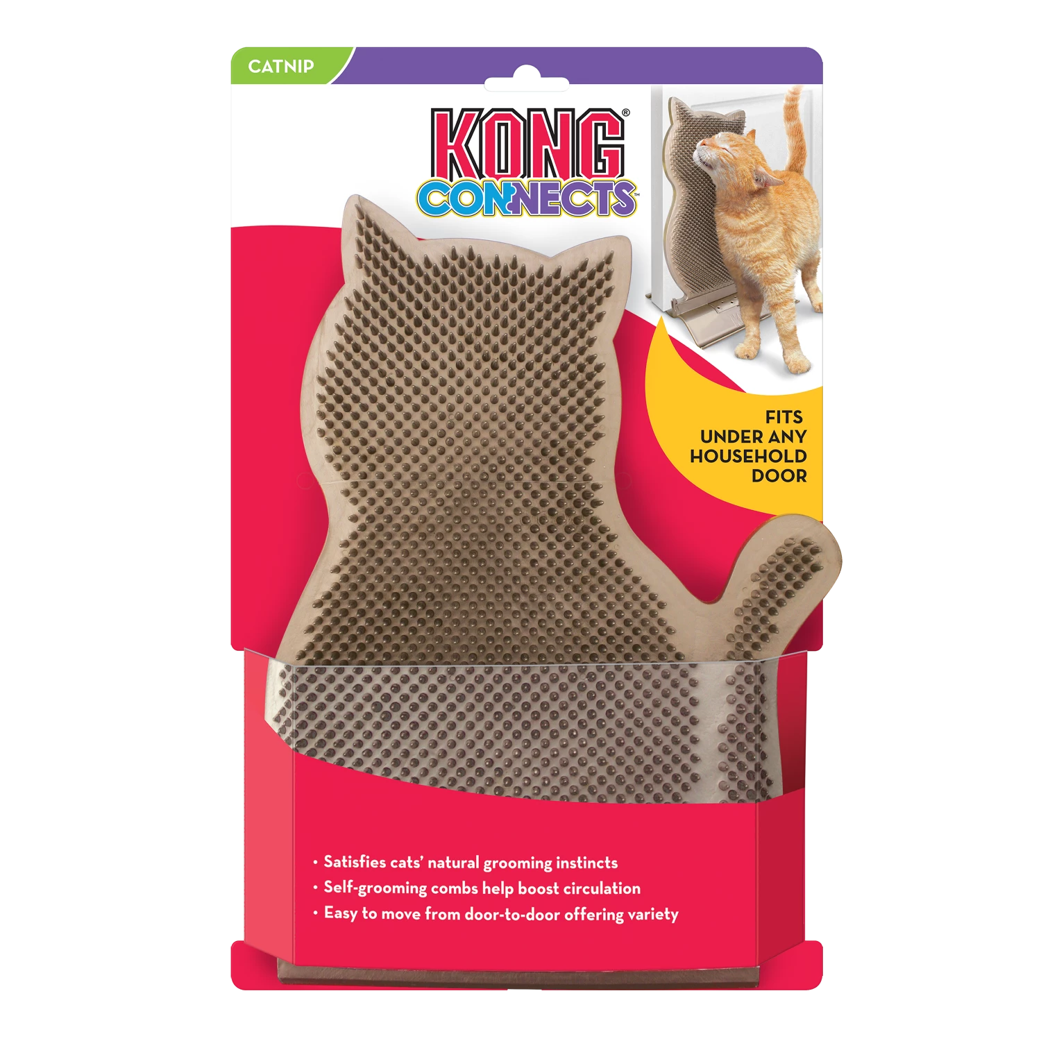 Le KONG Connects Kitty Comber offre aux chats une expérience d’auto-toilette tout en satisfaisant leurs instincts naturels d’hygiène. En se frottant contre le KONG Connects Kitty Comber, les chats reçoivent un massage apaisant qui satisfait leurs instincts naturels de toilettage.Le Kitty Comber offre également un support de porte autoportant à encliqueter qui est facile à déplacer d’une porte à l’autre pour fournir aux chats un expérience plus variée. Saupoudrez de l’herbe à chat nord-américaine de qualité supérieure KONG (incluse) dans la cavité de la menthe pour ravir votre chat.Facile à déplacer d’une porte à l’autre pour plus de variété.