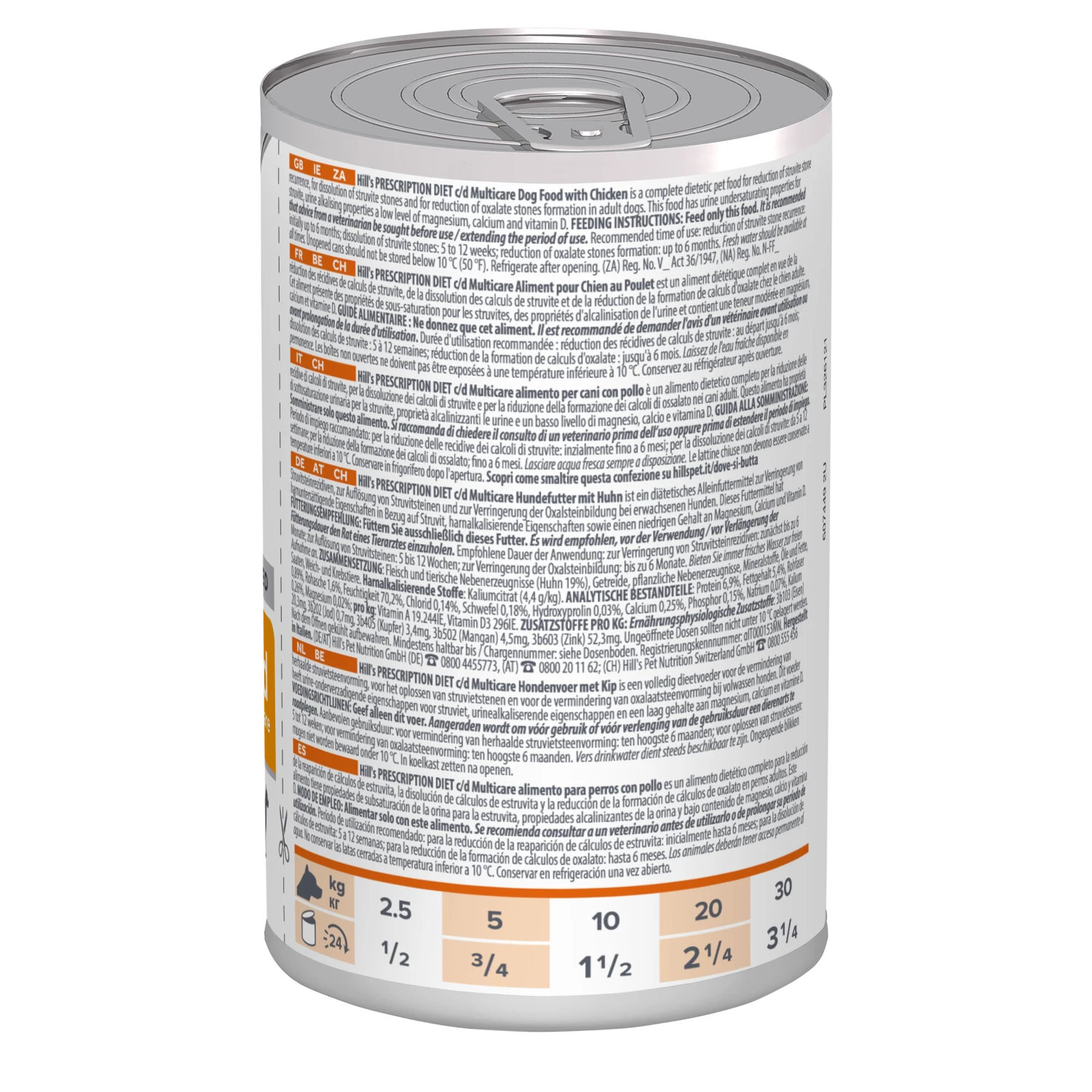 Les calculs vésicaux sont très douloureux et peuvent réapparaître après avoir été dissous. Prescription Diet Canine c/d contribue à éviter une nouvelle formation des calculs de struvite. Bienfaits Essentiels: – Aide à réduire la récidive des cristaux et des calculs de struvite et de phosphate de calcium. – Une Formule Supérieure Enrichie en Antioxydants pour aider à réduire les lésions cellulaires oxydatives. Différentes tailles disponibles: 370g