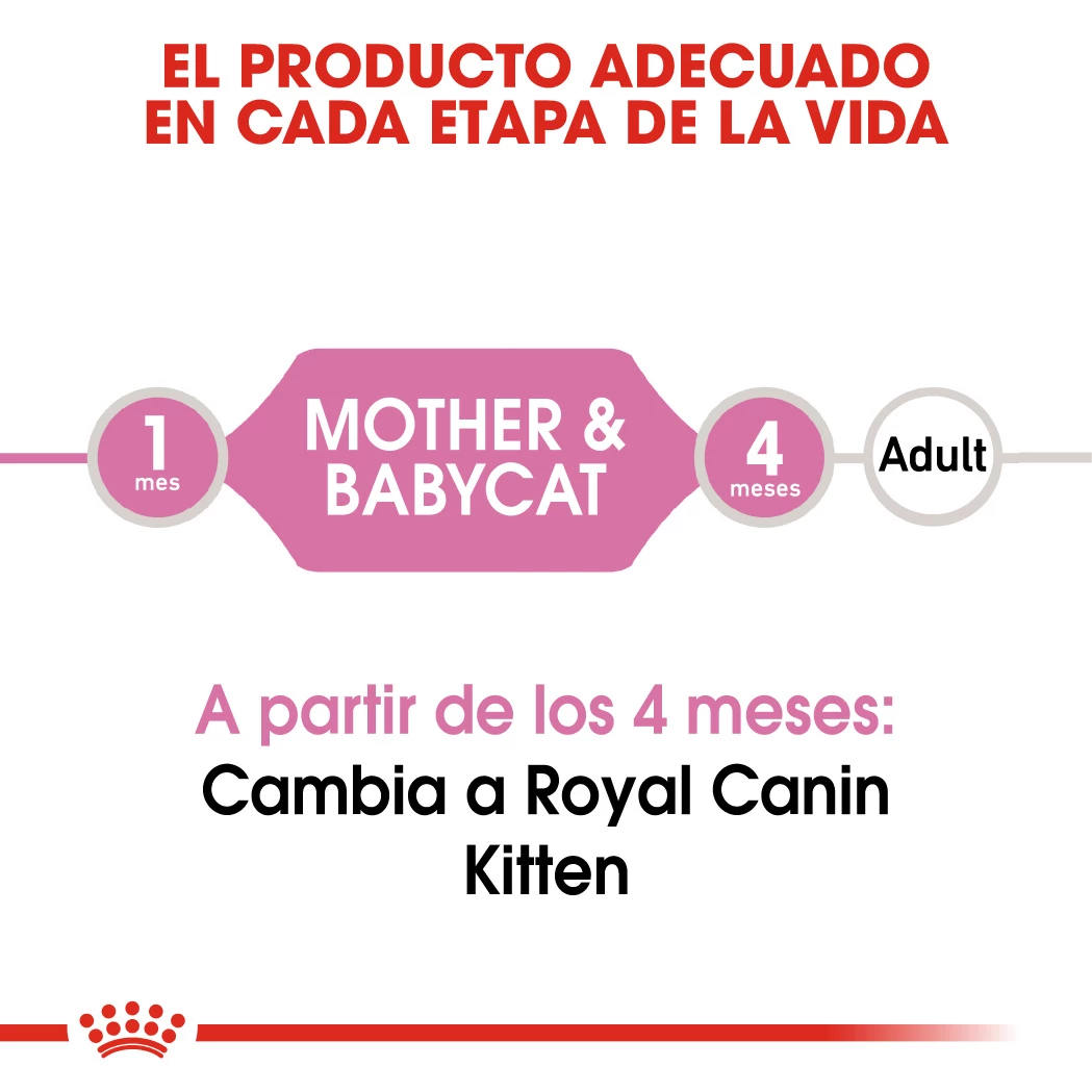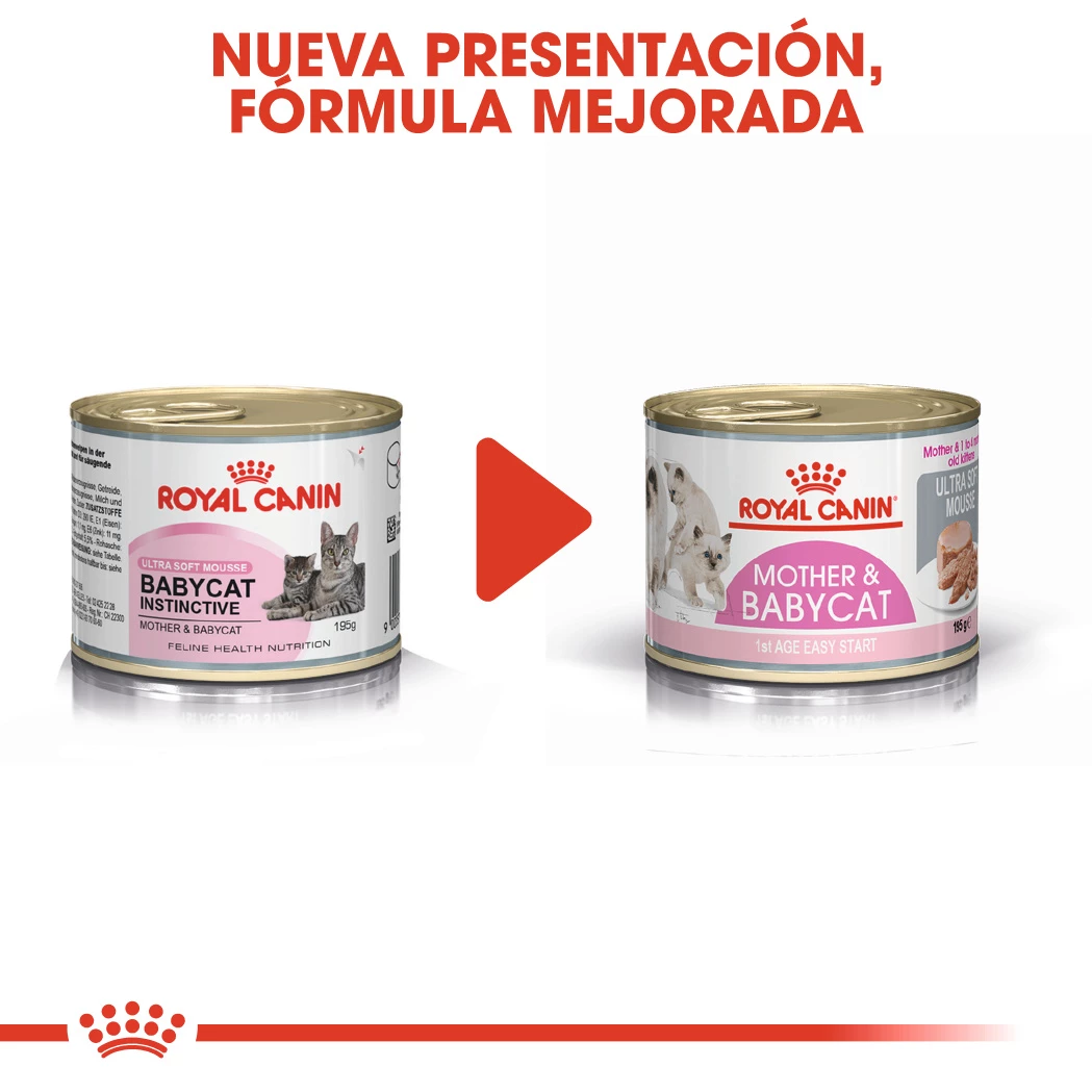 ROYAL CANIN® Mother & Babycat Mousse a été formulé en tenant compte des besoins nutritionnels de la mère et de ses chatons, et convient aussi bien aux femelles enceintes ou allaitantes qu’aux chatons âgés de 1 à 4 mois.