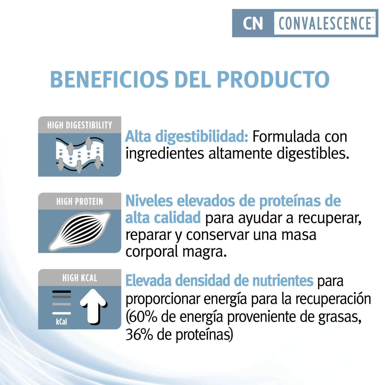 La formule CN Convalescence féline et canine est recommandée jusqu’à la guérison ou la convalescence complète. Réchauffer la nourriture à température ambiante peut contribuer à améliorer l’appétence des chats. Cette nourriture peut être diluée dans l’eau (1:1) si l’on souhaite une alimentation par sonde. La formule CN Convalescence féline et canine peut être utilisée chez les chats avec des tubes ≥ 9 FG. La ration doit être adaptée à la ration nécessaire en fonction des besoins cliniques. ‘