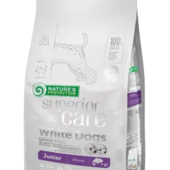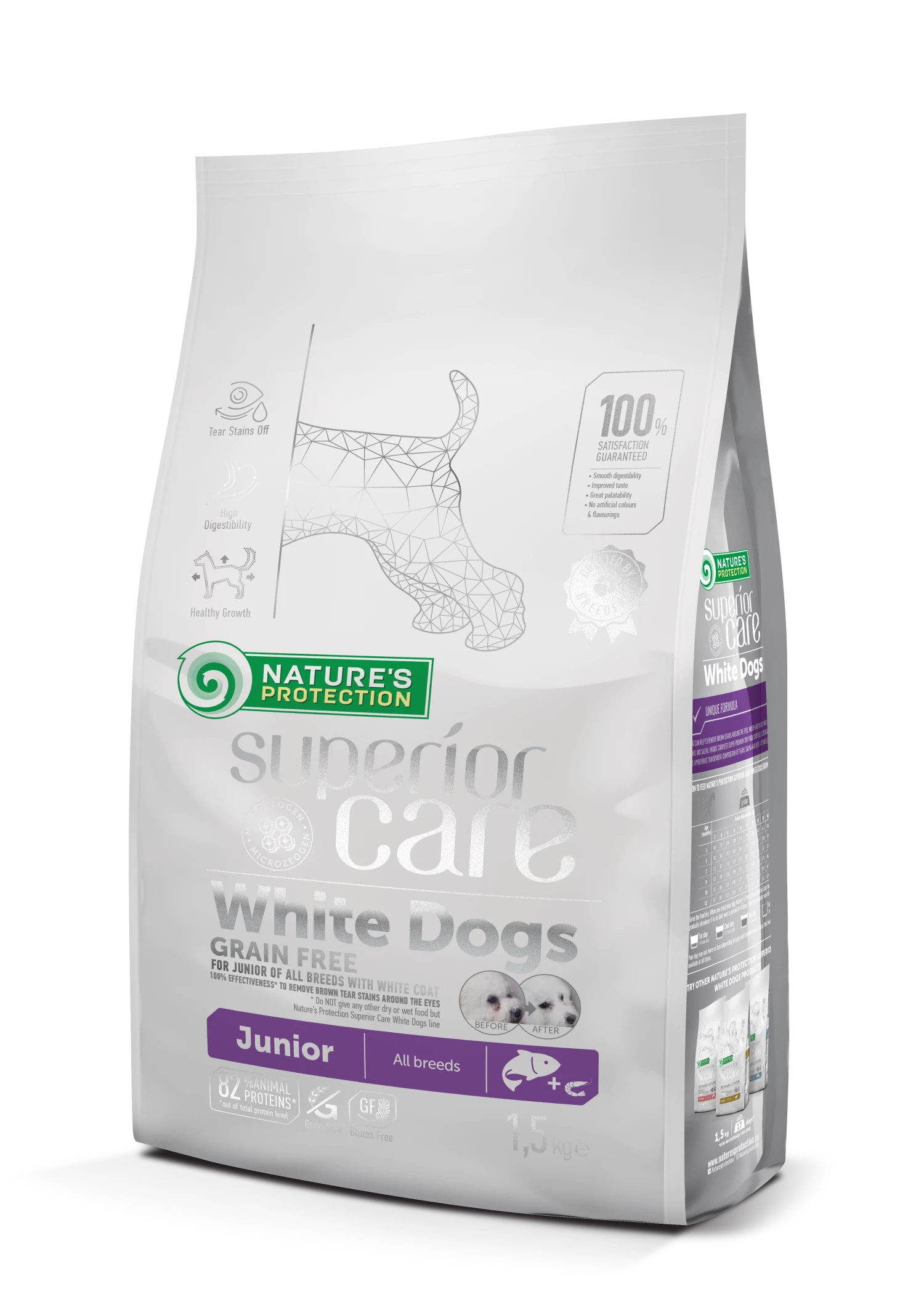 Aliments complets sans céréales pour les chiens en croissance de toutes les races aux cheveux blancs. 3 à 12 mois Formule unique pour les jeunes qui peut aider à éliminer les taches brunes autour des yeux, la bouche et les pattes qui apparaissent en raison des larmes et de la salive. Soigneusement conçus pour maintenir la bonne composition claire des larmes, la salive et maintenir un revêtement en acier inoxydable. Sans ingrédients à base de céréales qui peuvent provoquer des réactions allergiques. Convient aux animaux domestiques avec des systèmes digestifs sensibles car ce type de nourriture ne surcharge pas le tube digestif. Saumon certifié de la plus haute qualité de la Norvège. Antarctic Krill, une source unique et 100% durable d’oméga-3, sert le corps de votre animal avec des avantages scientifiquement éprouvés. Selon les dernières recherches *, les oméga-3 de Krill sont absorbés 2,5 fois plus efficacement que les huiles de poisson ordinaires.