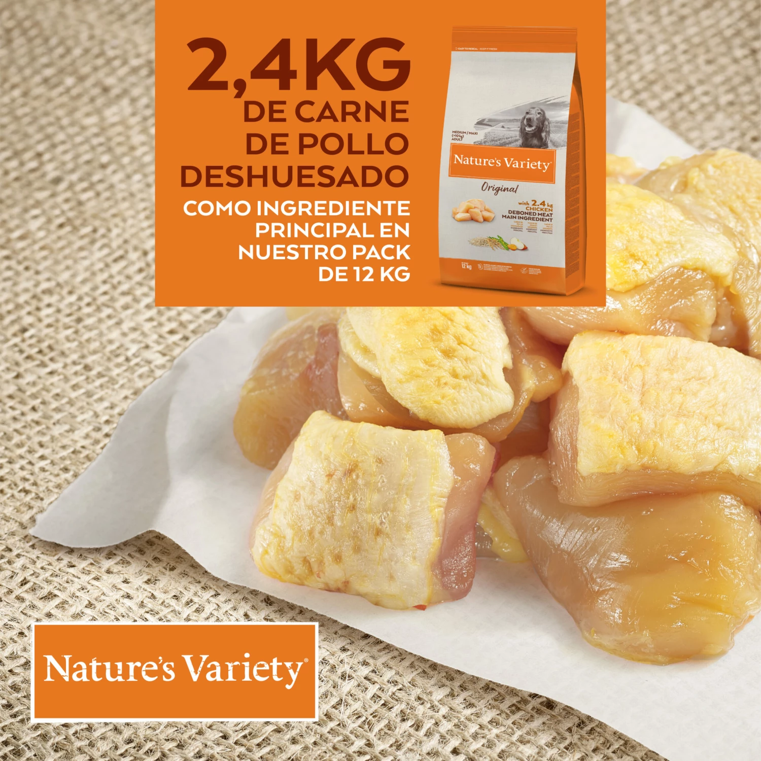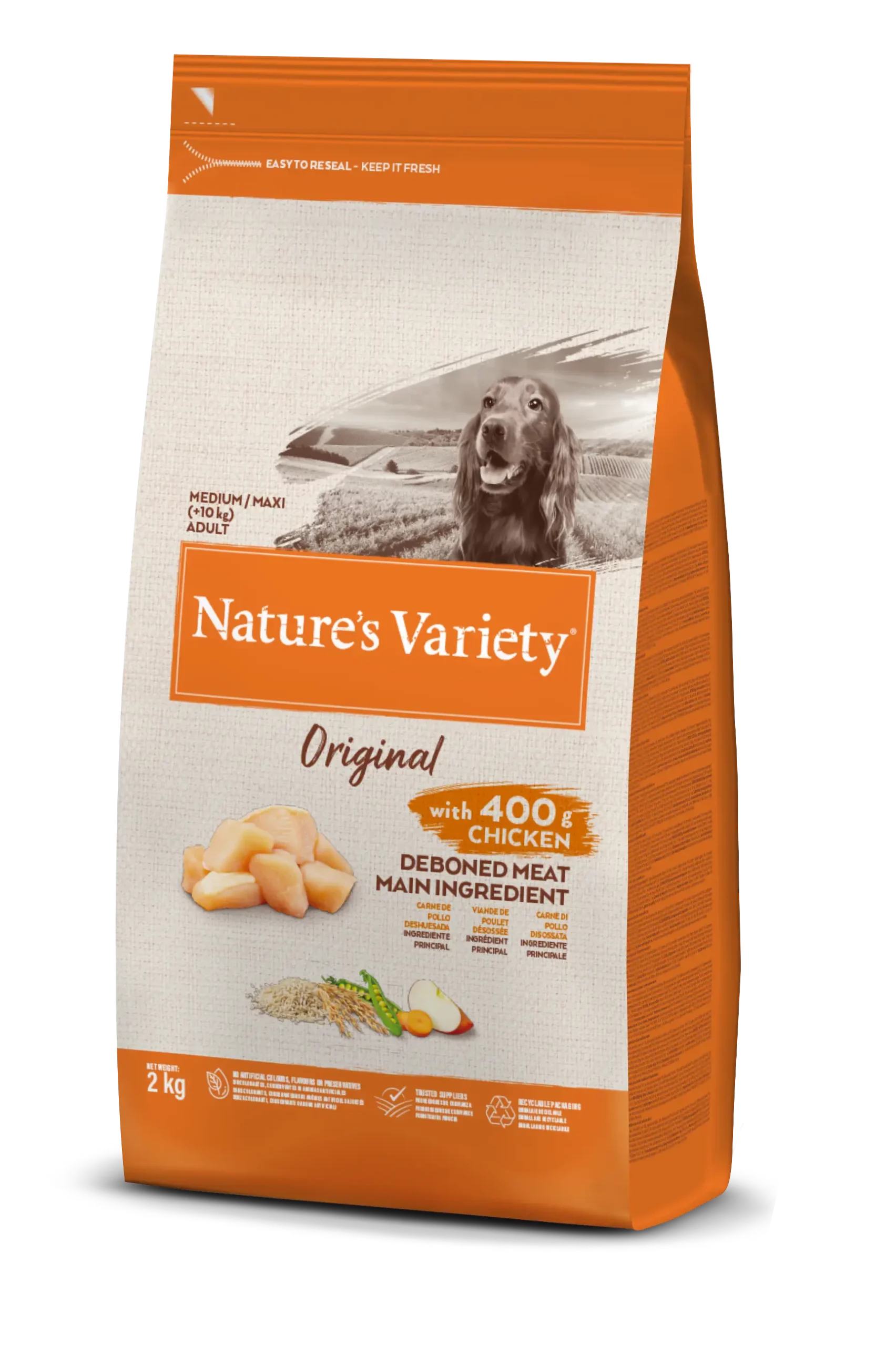 – L’ingrédient principal de cette formule est le poulet frais, associé à une sélection rigoureuse de céréales complètes (riz complet, org