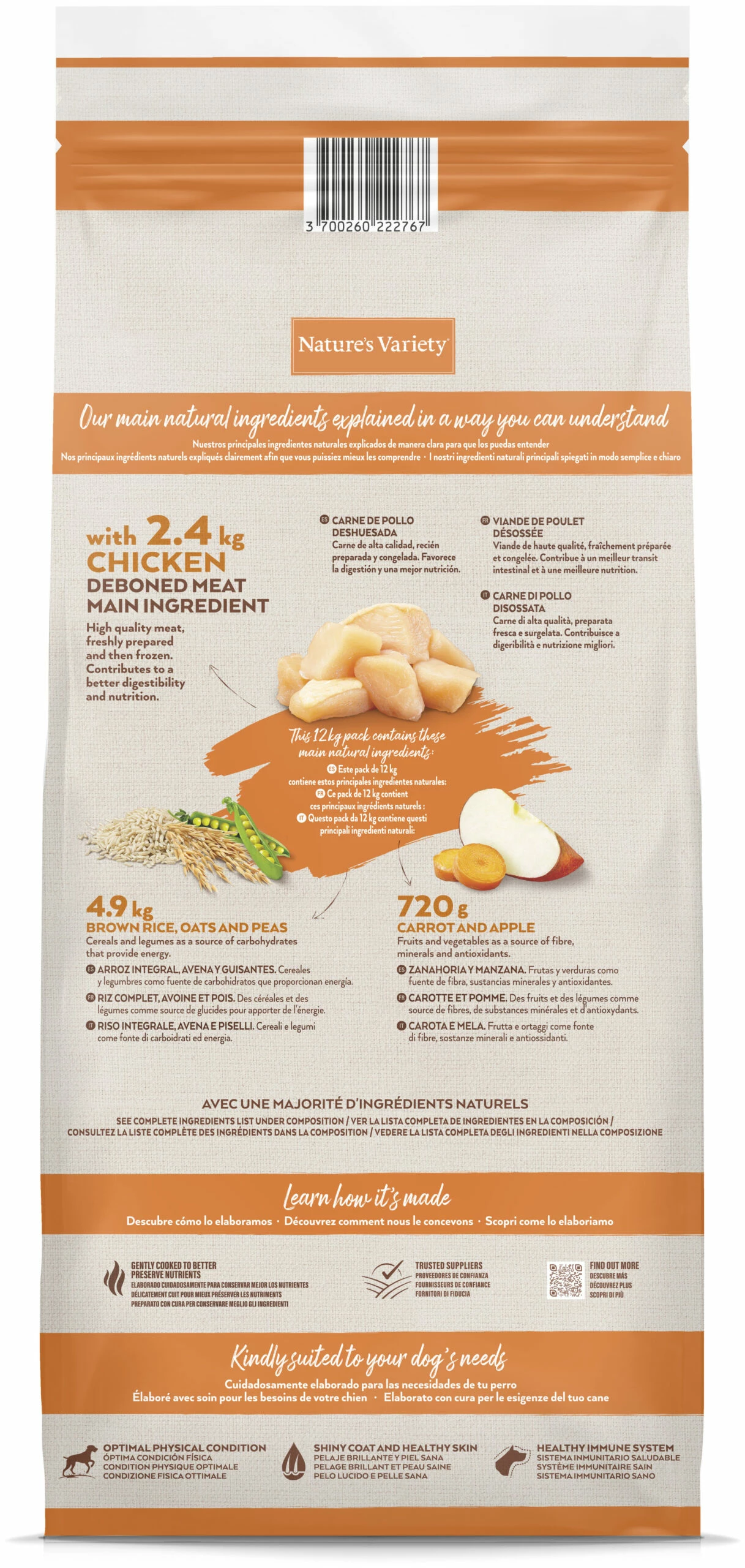 – Est élaboré à partir d’un mélange unique, complet et équilibré d’ingrédients naturels préparés à la vapeur.