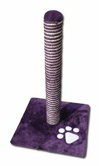 Griffoir classique qui comprend une base carrée en lilas avec une jolie empreinte blanche dans un coin, avec un poteau en sisal de 63cm de long pour que votre chat puisse jouer et griffer.