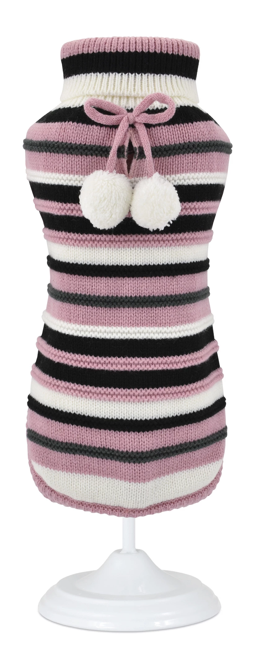Pull en tricot adaptable avec des rayures de différentes textures. Avec oeillet pour la sangle et élastique à la queue (20x14x1cm).