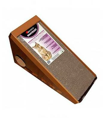 Griffoir en carton Skatecat pour chats en forme de triangle. Conçu pour rendre le chat confortable tout en griffant. En général, le carton les rend fous ! Avec un sac de cataire pour le mettre dans les fentes.