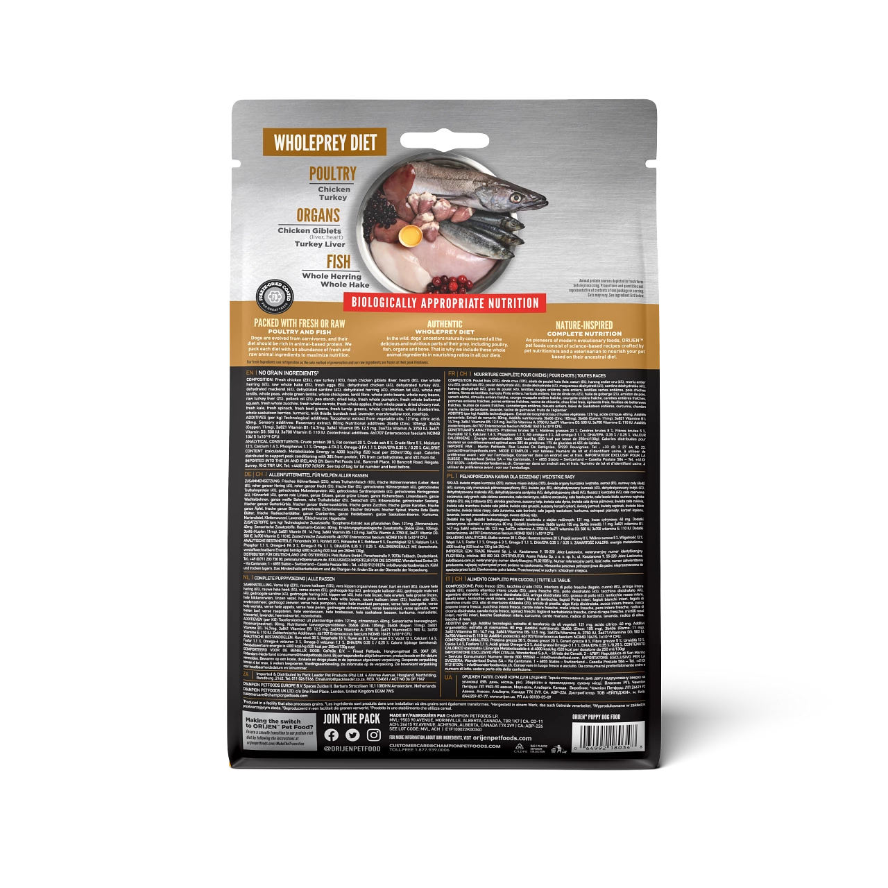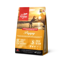 Orijen Puppy est une nourriture pour chiots totalement naturelle qui fournit à votre animal, dans ses premiers mois de vie, une alimentation équilibrée avec toutes les vitamines et les nutriments nécessaires à son bon développement.