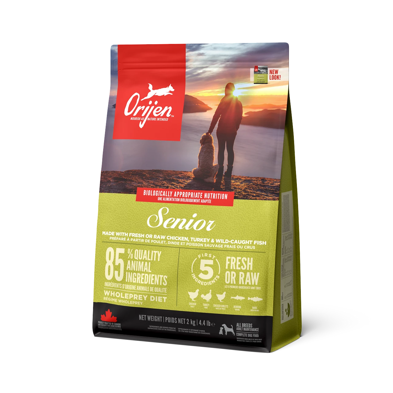 Orijen Senior est une nourriture pour chiens âgés entièrement naturelle qui fournit une nutrition adéquate aux animaux âgés. Ce régime complet est composé d’ingrédients biologiques pour fournir une alimentation équilibrée à votre animal.